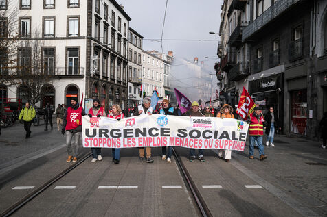 Mobilisation à Clermont-Ferrand pour défendre les emplois de l'industrie contre les plans sociaux.