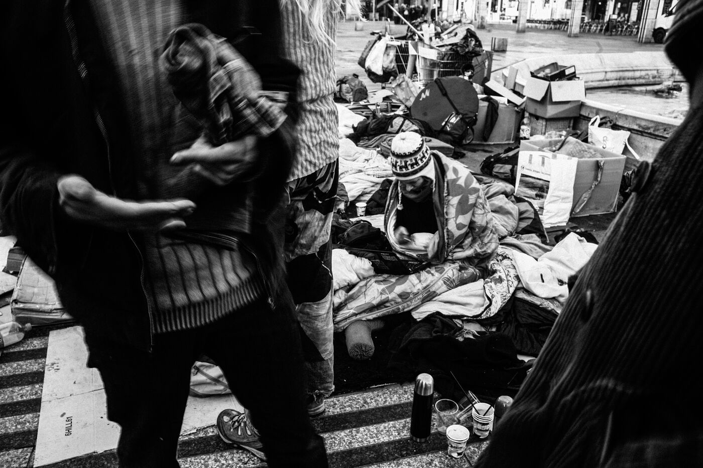 Under pressure from law enforcement, who banned the installation of tents and the use of mattresses, the protesters showed creativity in maintaining their presence. Mattresses were hidden under cardboard, and everyone fought to keep their protest visible. Beyond this material resistance, the occupation evolved into a true space for exchange and solidarity. The discussions and debates that took place there led to the formation of affinity groups—collectives that later organized to open squats in the city, continuing their fight against social injustices.