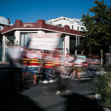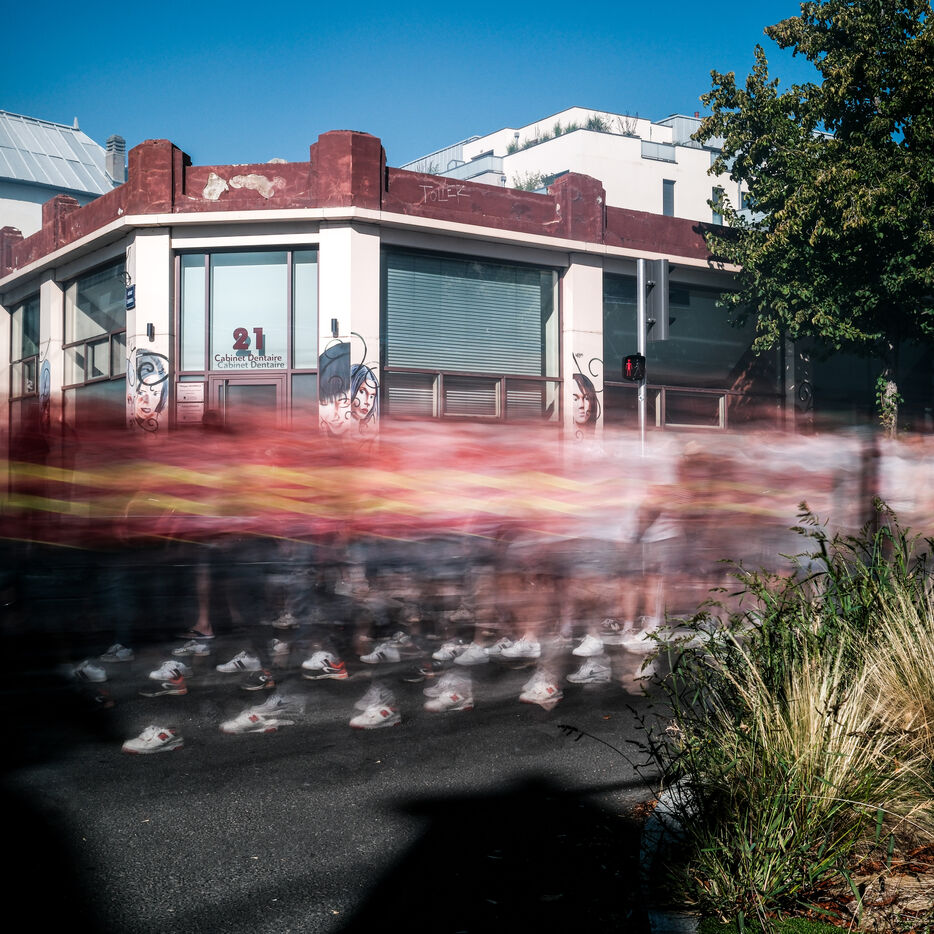 This photo series was shot using an ND filter and long exposure during a day of inter-union mobilization against the government's social and economic policies, joined by the "Bloquons Tout" movement in Clermont-Ferrand. By capturing the blur of moving bodies, the images visually convey the collective force and persistence of protest within the urban landscape.