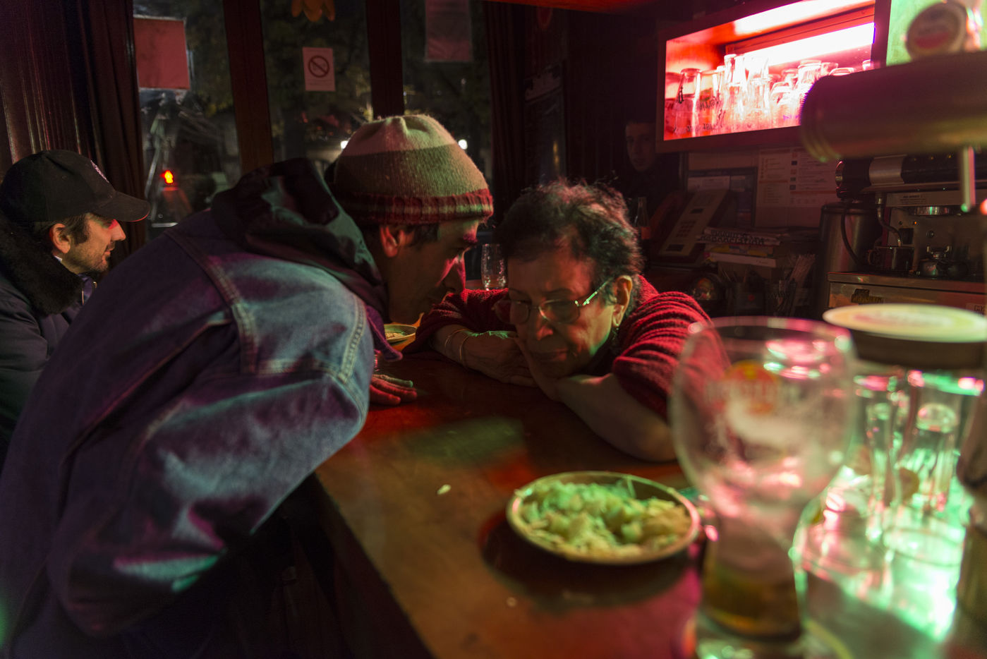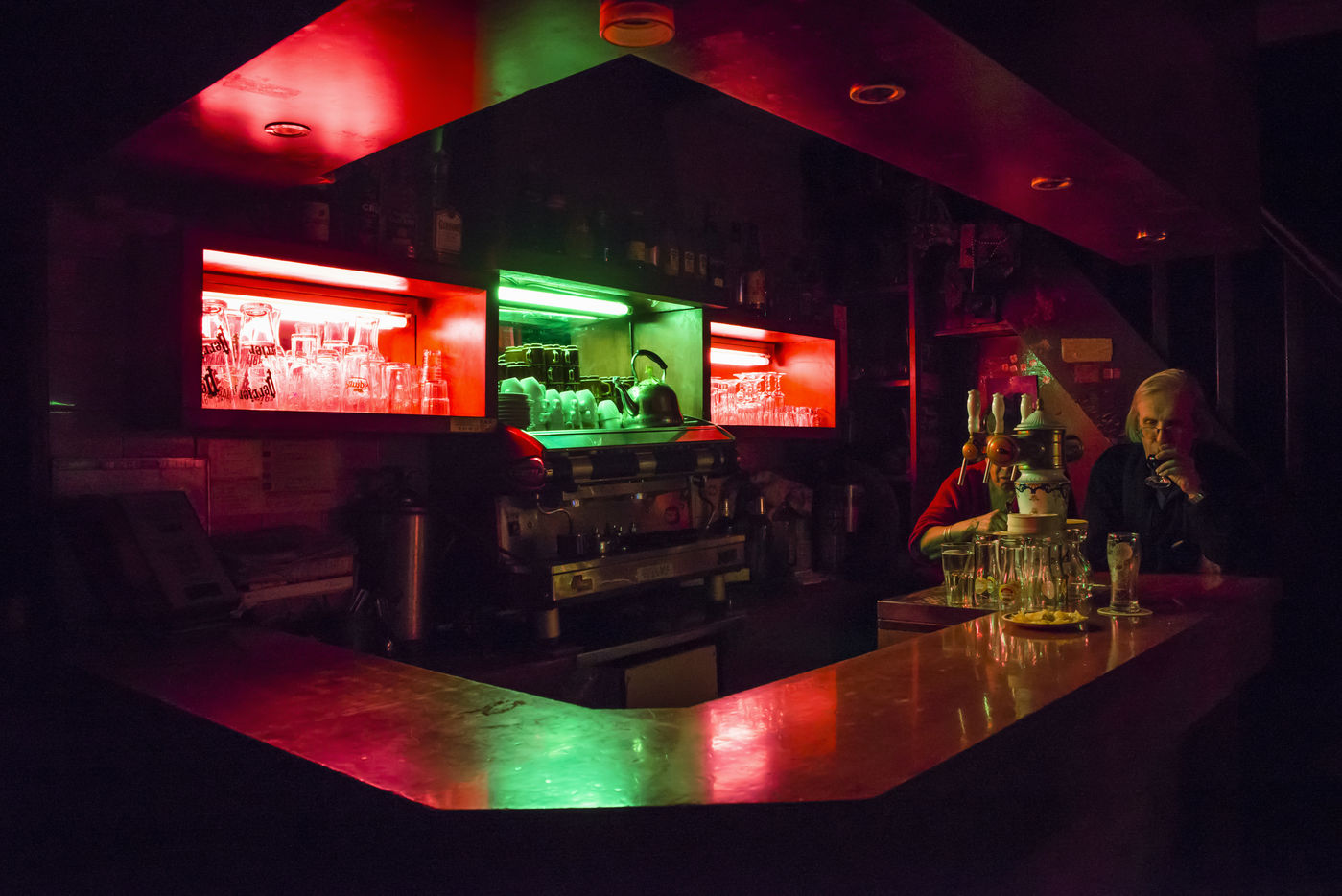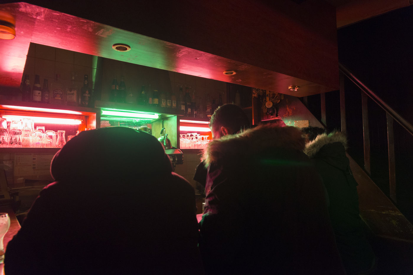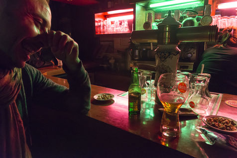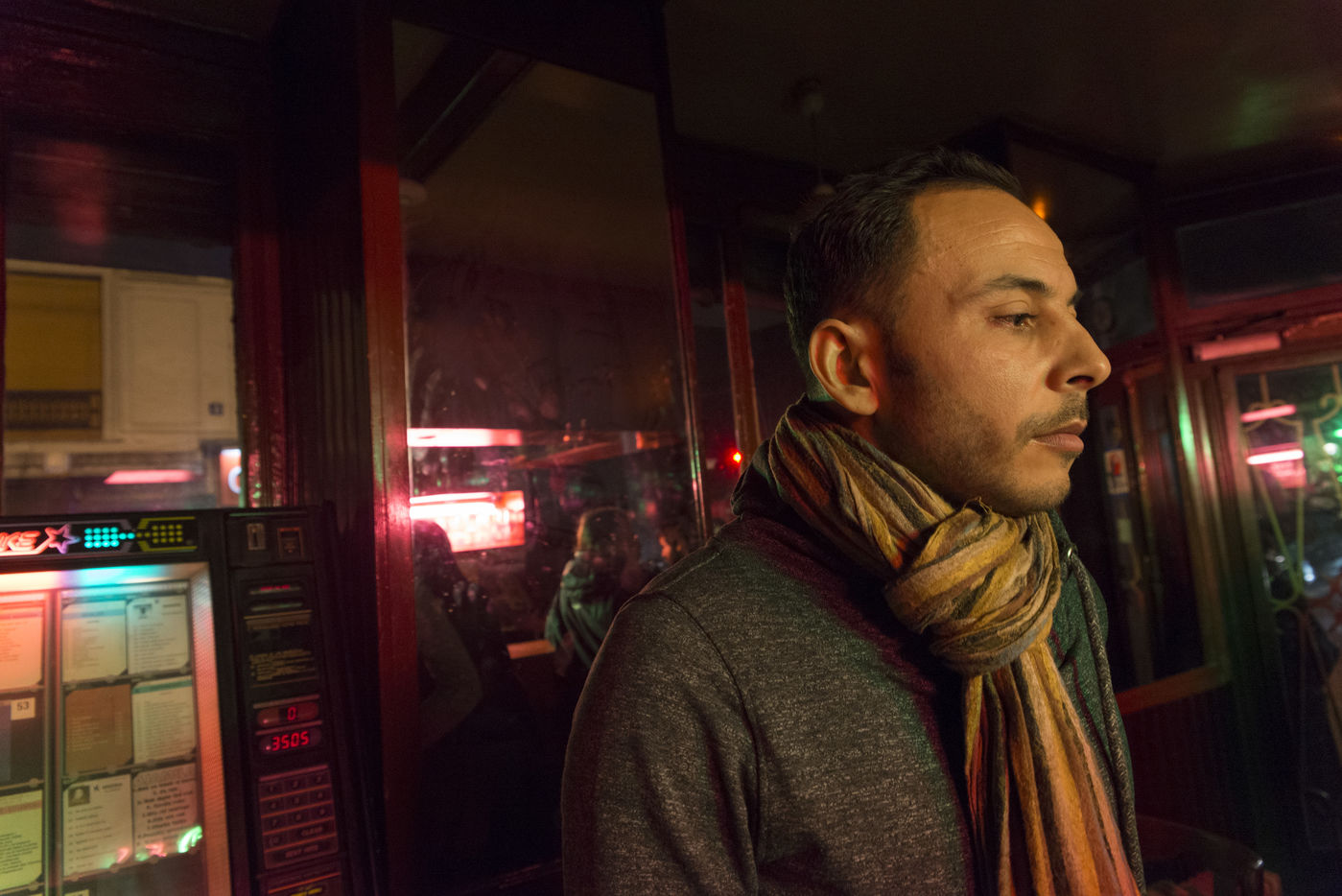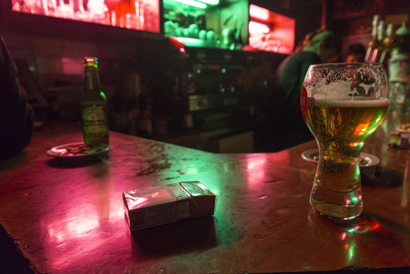 The old Jukebox play the 90's Raï tube and some french classics as Aznavour meanwhile people are drinking their beer at the bar.