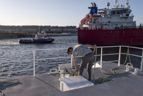 The departure at sea is done according to the SAS of access to the port, and thus the tidal range. That day Maxime gave an appointment with his sailors for 7:30 pm. The work will therefore be done at night, the schedules depend on the tidal cycle. The return to the port is scheduled for 7am the next morning.