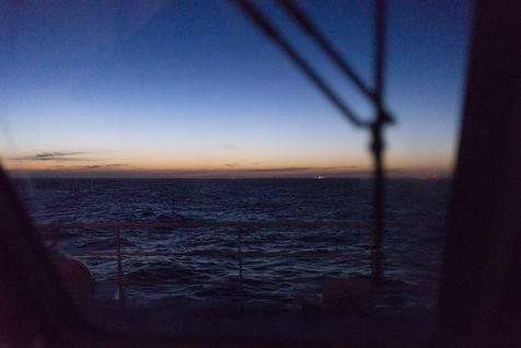 Le départ en mer se fait en fonction des SAS d'accès au port, et donc du marnage. Ce jour-là Maxime a donné rendez-vous à ses marins pour 19h30. Le travail se fera donc de nuit, les horaires dépendent du cycle des marées. Le retour au port est prévu pour 7h, le lendemain matin.