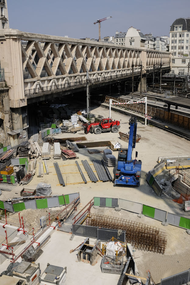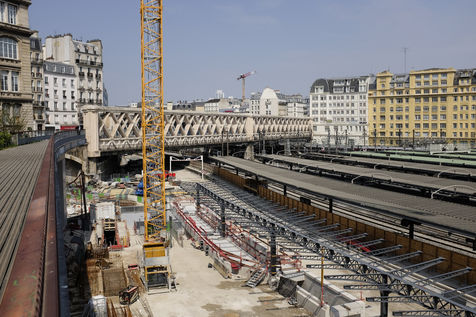 France, Paris 29/04/2022. The construction of the CDG Express, the train that will directly connect Roissy Charles De Gaulle airport and the Gare de l'Est in 20 minutes has begun. Like here on the platforms of Gare de l'Est which will be provided for the CDG Express trains.