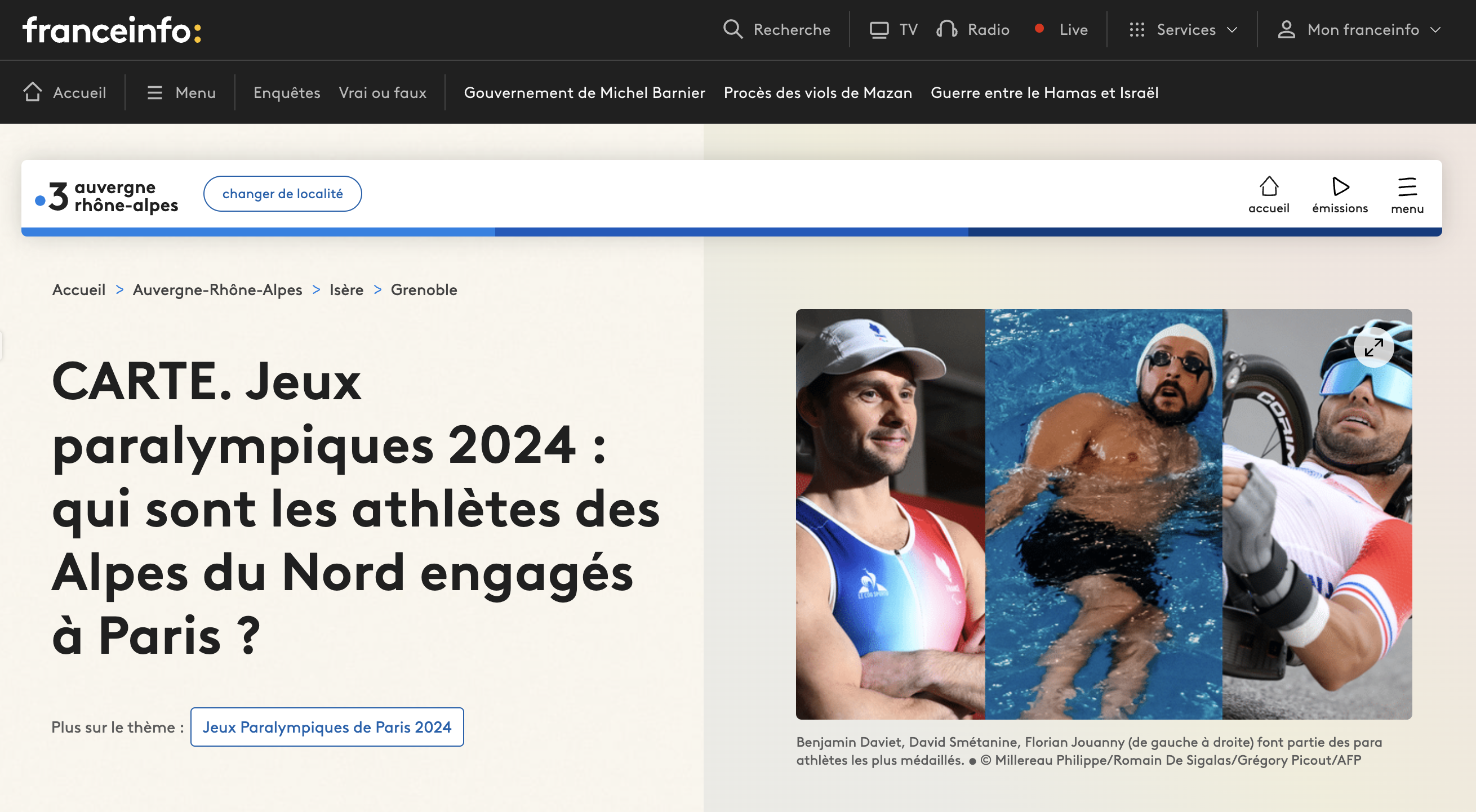 Romain De Sigalas Publications Séries / Archive Paris — Société — Sport Sélection de séries Capital, Glisse La passion du surf déferle sur la France Capital, Glisse La passion du surf déferle sur la France 20minutes.fr, Hippisme : La fin des coups de cravache va-t-elle donner « une meilleure image des courses » ? Les Echos Week-End, COMMENT LE TURF VEUT REVENIR DANS LA COURSE Konbini.com, Pourquoi il n’y aura aucune course hippique ce jeudi en France (et c’est vraiment très rare) ? liberation.fr, Jeux paralympiques 2024 : en escrime fauteuil, «comme dans tous les sports d’opposition, ce sera le mental qui fera la différence» 1jour1actu.com, aux Jeux paralympiques, 11 000 spectateurs ont fait la ola en silence franceinfo.fr, Jeux paralympiques 2024 : qui sont les athlètes des Alpes du Nord engagés à Paris RCF Radio, Yohan Peter membre de l equipe de France de fauteuil escrime s'entraine avant les jeux paralympiques de Paris L Equipe Magazine, Escapade olympique L Equipe Magazine, Escapade olympique L Equipe Magazine, Escapade olympique L Equipe Magazine, Escapade olympique leparisien.fr, Marie-José Pérec encourage les coureurs 20minutes.fr, Marie-Jo Pérec en guest journalisme.com, Prix de la photo de presse 2024 lanouvellerepublique.fr, Selection vote pour la photo de presse 2024 francelive.fr, Qui est Daniel Woirin, le coach de Benoît Saint-Denis et légende de MMA ? franceinfo.fr , ON N ACHETE PAS LE PERSONNEL Figaro Magazine, MMA BENOIT SAINT DENIS