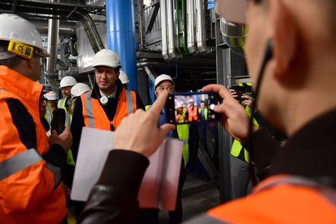 Yannick Jadot candidat Europe Ecologie Les Verts à la présidentielle, visite la chaufferie Biomasse de Surville.