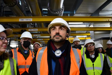 Yannick Jadot, Europe Ecology Les Verts presidential candidate, visits the Biomass boiler room in Surville.