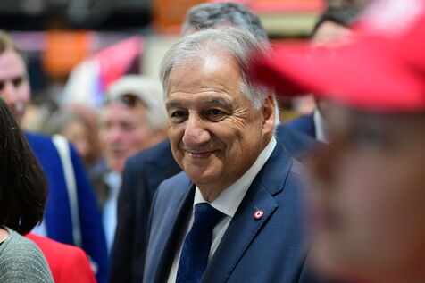 France, Saint Etienne, 2025/09/19. Politician Dino Cinieri, candidate for the 2026 municipal elections. Portrait at the Saint Etienne fair. Photograph by Romain Doucelin / Hans Lucas.