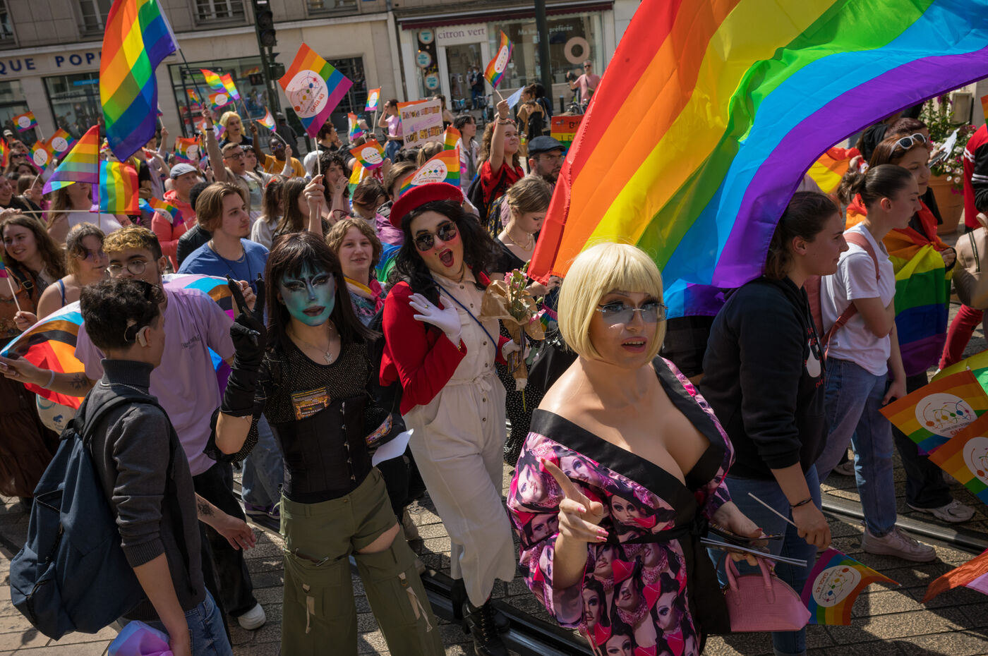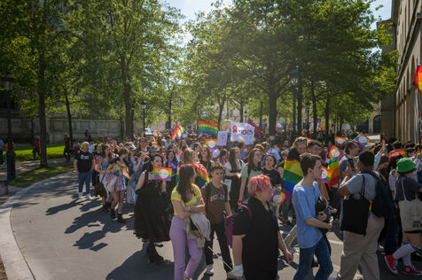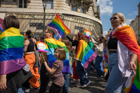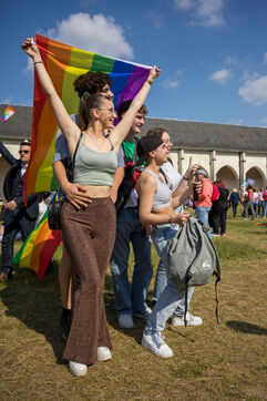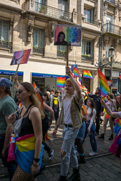 Marche festive contre les discriminations homophobes et transphobes dont sont victimes les membres de la communauté LGBTQIA+.