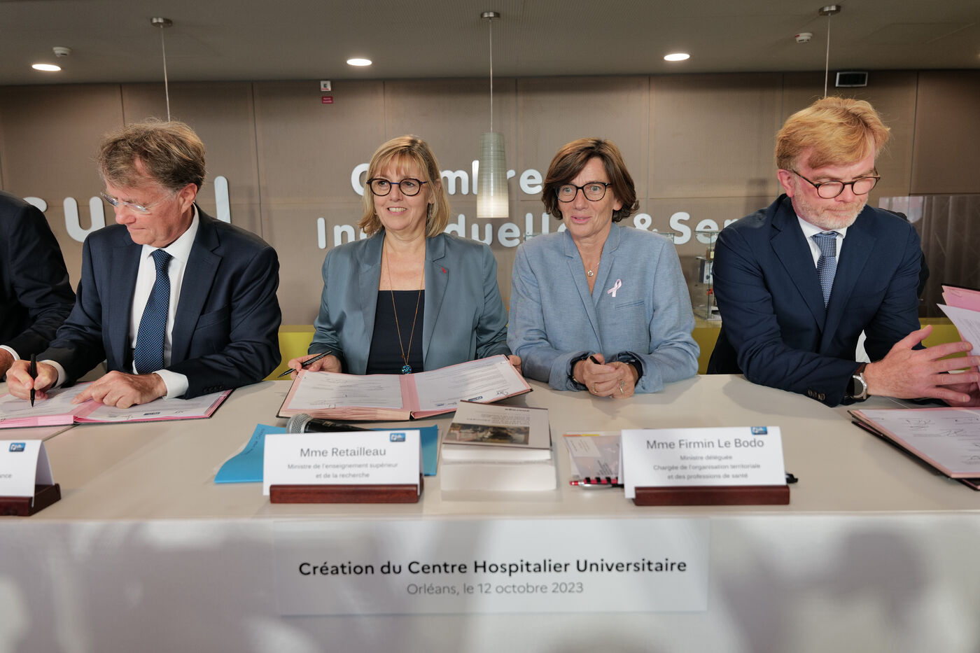Sylvie Retailleau, Minister of Higher Education and Research, and Agnès Firmin-Le Bodo, Minister Delegate for Territorial Organization and Health Professions, attached to the Minister of Health and Prevention, signed the agreement to convert the Centre Hospitalier Régional d'Orléans into a University Hospital.