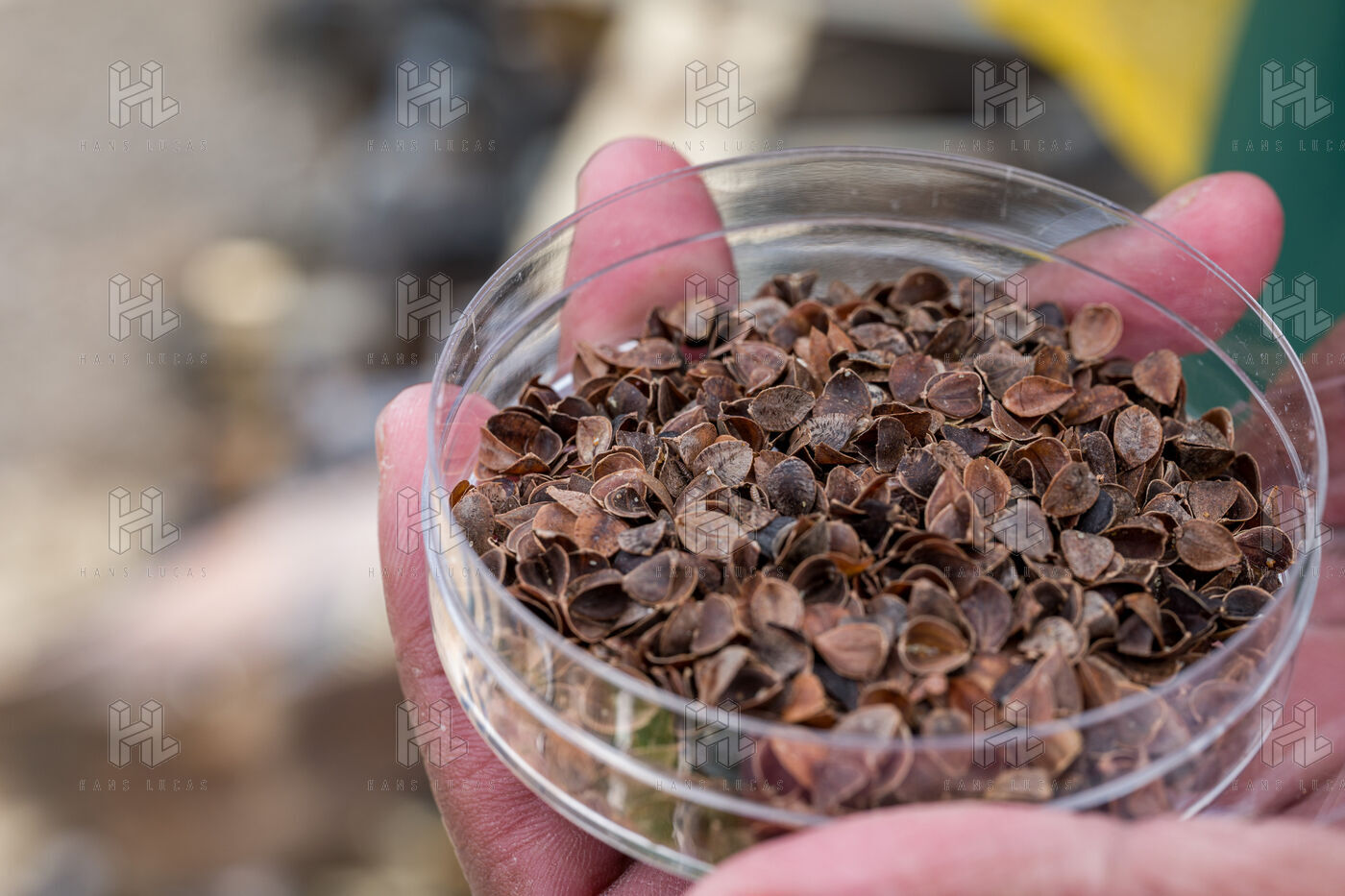 Ependage de larves de chrysopes dans un champ de betteraves pour lutter contre la proliferation de pucerons qui peuvent transmettre le virus de la jaunisse de la betterave à Merouville dans le cadre du PNRI, plan national de recherche et d innovation.