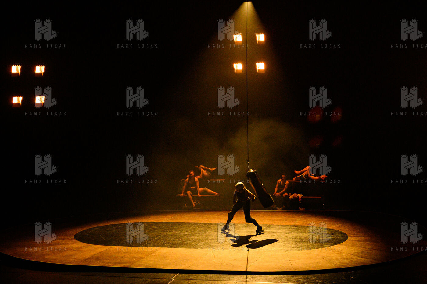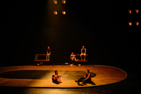 Performance of “Derby”, a collective creation by the UNA company, directed by Emmanuelle Hiron and Valia Beauvieux, at the Scène Nationale d'Orléans.