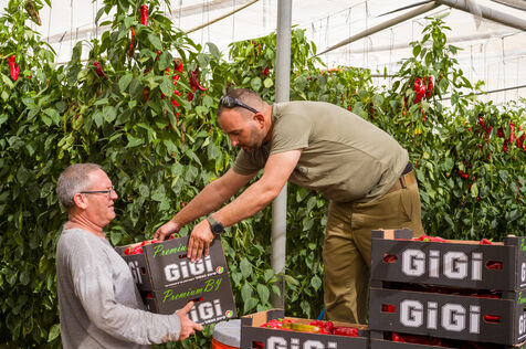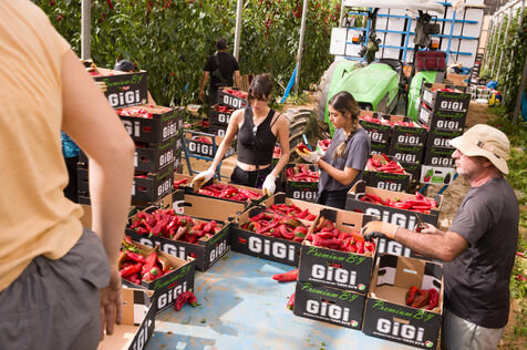 Hier c'était des aubergines, aujourd'hui ils récoltent des poivrons.