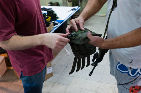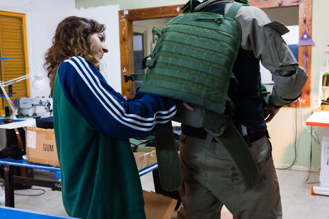 Fashion students volunteer to do sewing work on Israeli army uniforms. Repairs, but also customization to adjust pockets or seams, or improve wearability.