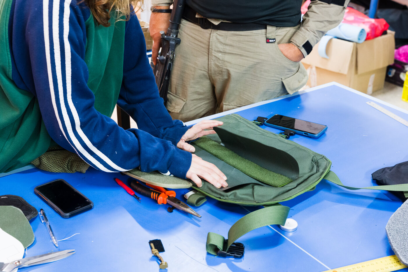Des étudiants en mode pour la plupart se portent volontaire pour effectuer des travaux de coutures sur les uniformes des militaires de l'armée israelienne. Réparation, mais aussi customisation pour ajuster des poches ou des coutures ou encore améliorer la portabilité.
