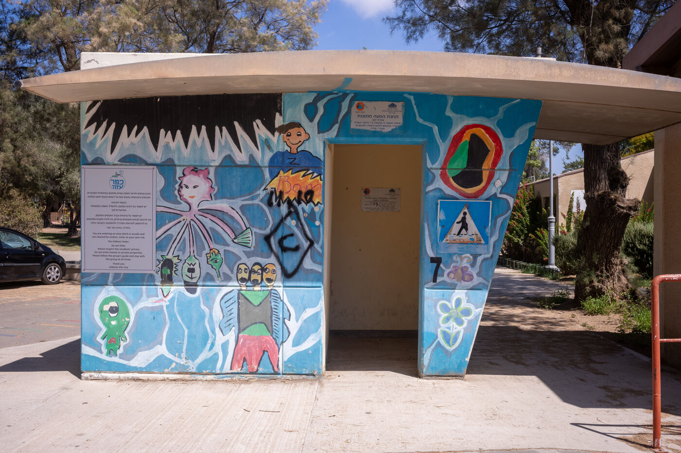 Afin de protéger la population civile des roquettes lancees par le Hamas, des nombreux abris ont ete installes. Dans les rues de Sderot, aux arrets de bus ou les parcs de jeux pour enfants.