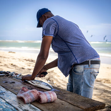 On the beach, the loved ones left on land scan the horizon, the excited dogs sense the imminent return of the fishermen. Men are busy getting their boats out of the Atlantic Ocean using logs. Once disembarked, they quickly unload their cargo of fresh fish to clean them on wooden tables on the beach and offer them for sale in nearby sheds. A whole well-established choreography takes place, the youngest and most vigorous pushing the heavy boats, the oldest giving their instructions. Solidarity between colleagues remains essential. Certain rare and precious products, such as the king crab called Santoyo here, are reserved before fishing and are collected directly from the boats. Restaurants, tourists and locals will all be satisfied.
