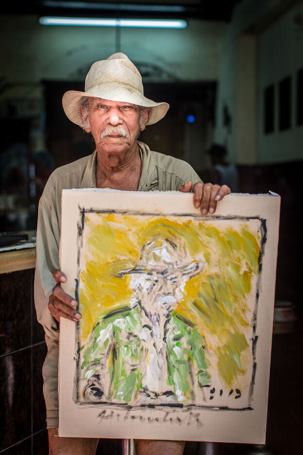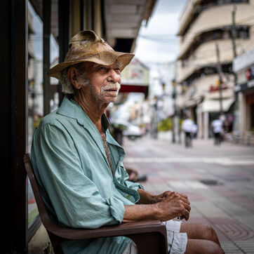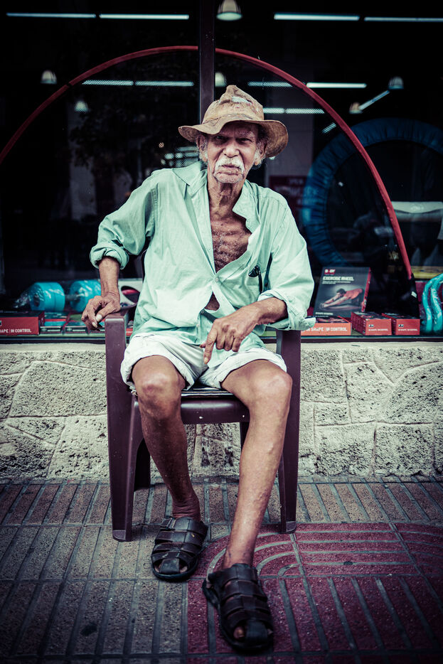 In 2016, by meeting the iconic painter Jose Cestero in his hometown on Calle El Conde in Santo Domingo in the Dominican Republic, I was able to take some portraits of the character. Unfortunately, on my return to France, through poor handling, I had erased the images from my box. Since then, every time I pass through the Dominican capital, I want to correct this mistake and go back in time. Like a ritual, I don't fail to look for the artist in places where we can usually come across him. When I find it again, like an immutable landmark of the colonial city, we talk for a few moments. Over time, I notice that the eyesight of Jose Cestero, born March 19, 1937, continues to decline. Perhaps she is now even in tune with his vibrant neo-impressionist painting. Will I see him again next time?