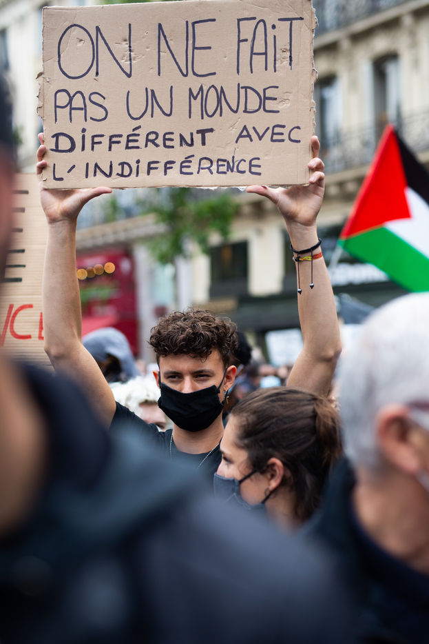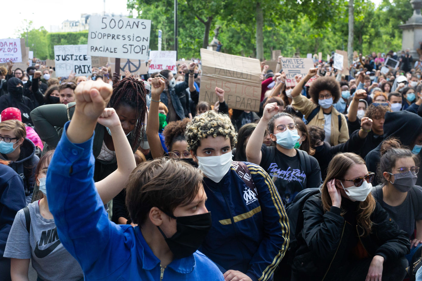 Thousands of people gathered in front of the Paris court to denounce police violence at the call of the Justice for Adama committee and other associations supporting the families of victims of police violence.