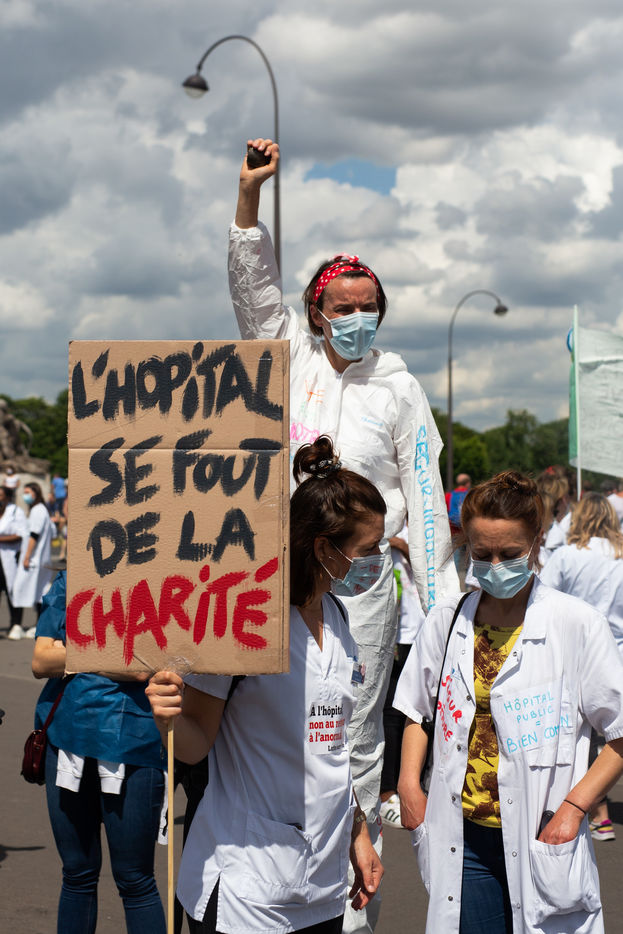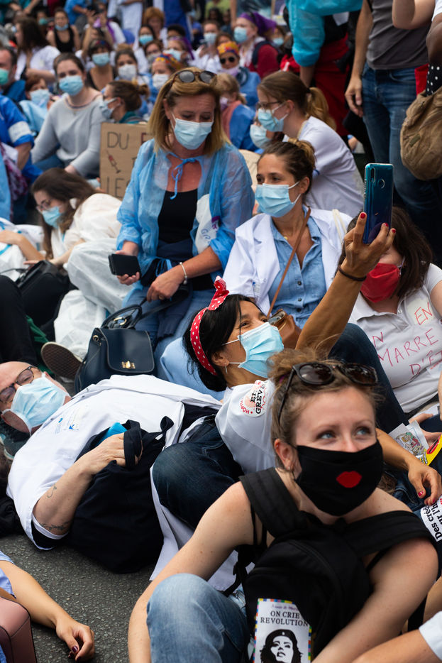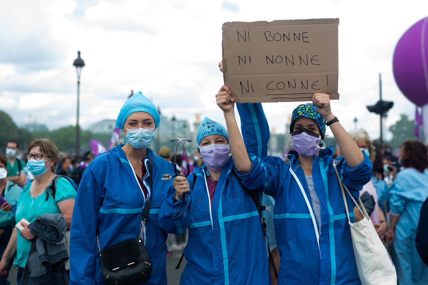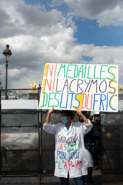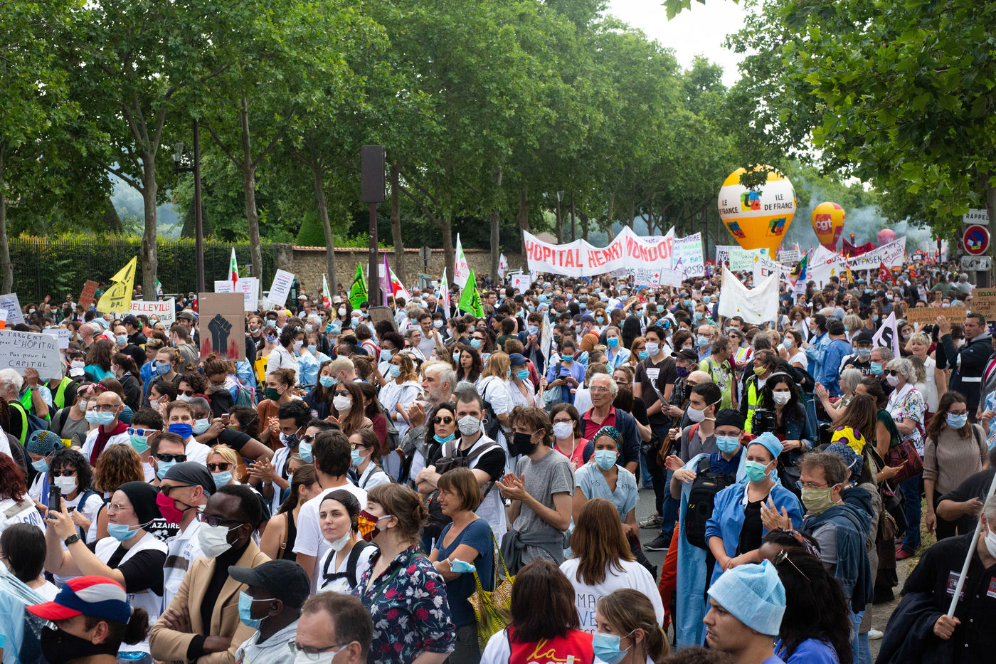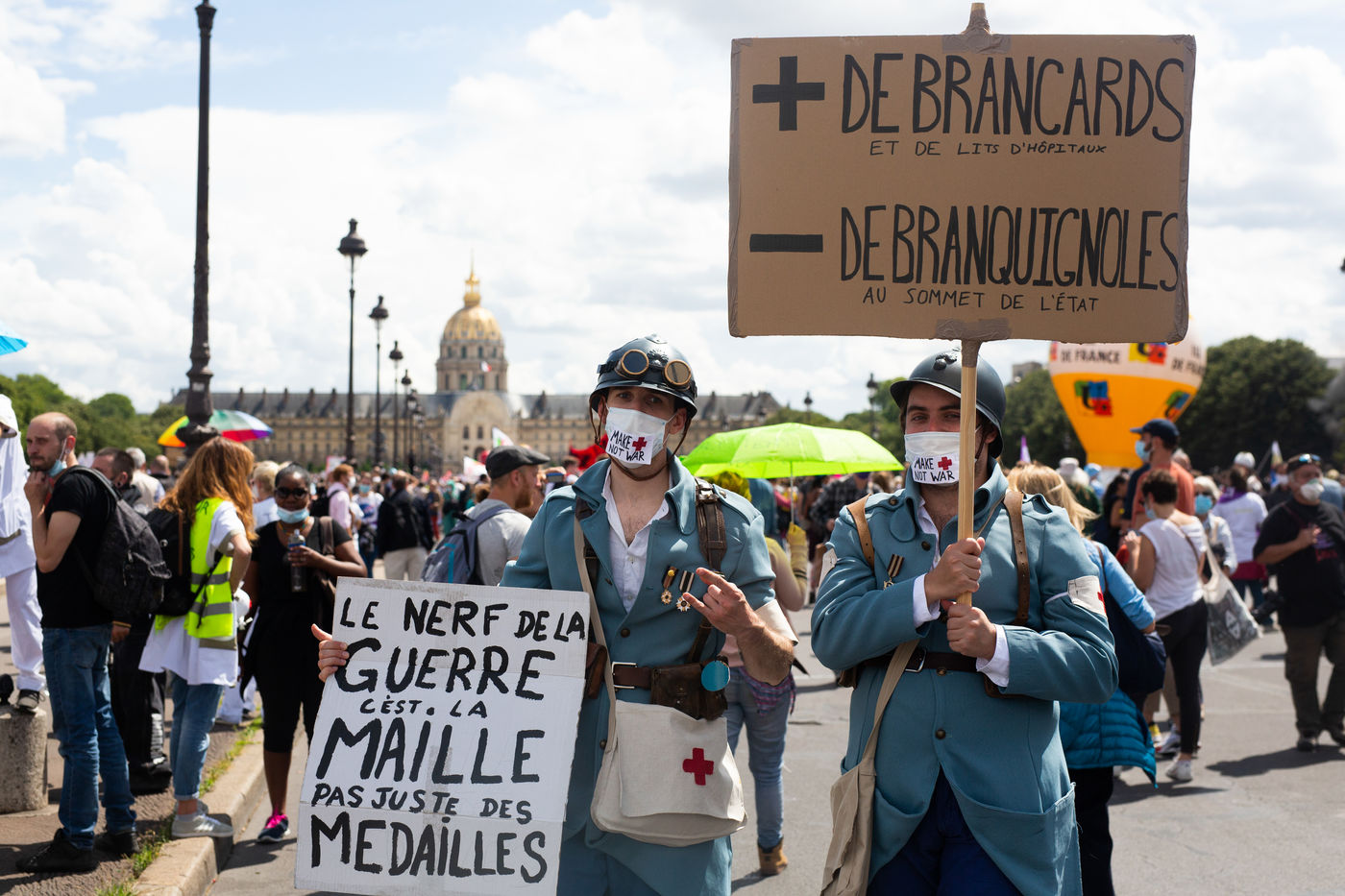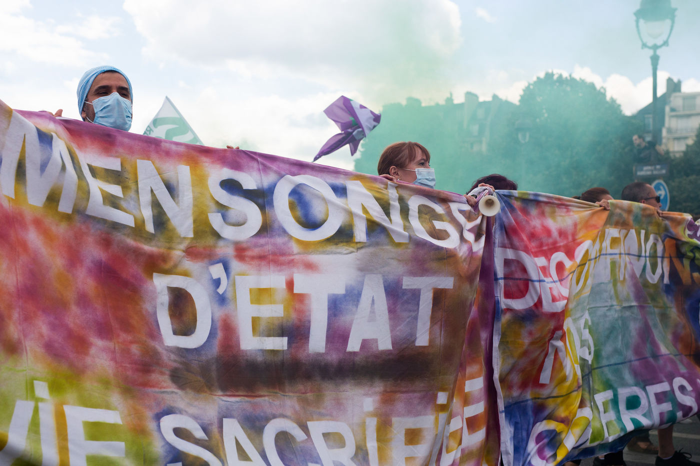 A demonstration grouping together several unions and associations took place in Paris in front of the Ministry of Health to continue on Military School before being blocked at Invalide.