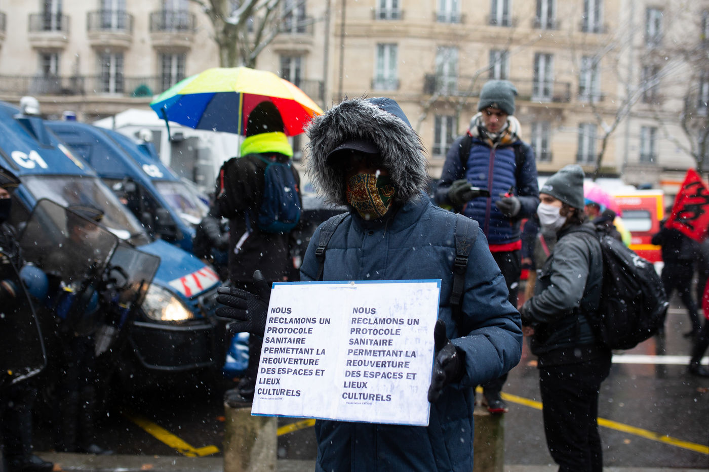 PLusieurs milliers de personnes se sont réunis afin de demander le retrait de la loi sécurité globale ainsi que la réouverture des lieux culturels et artistiques à Paris,