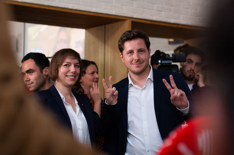 Meeting et conférence de presse avec les représentants de la NUPES à l'annonce des résultats du premier tour des eléctions législatives.