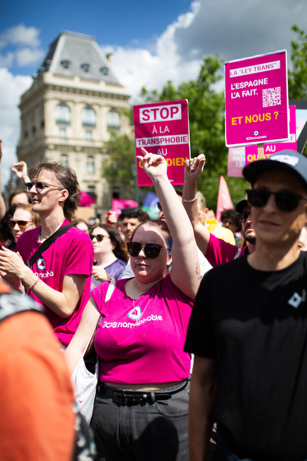 Several hundred demonstrators gathered at Place de la Republique to defend the rights of trans people and combat transphobic discourse in society,