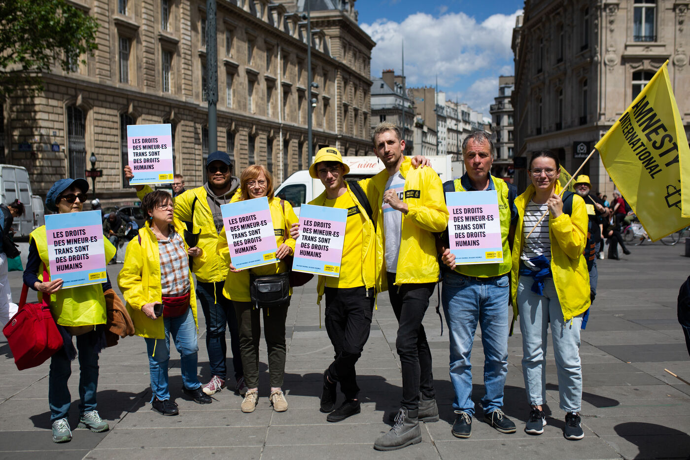 Ils on aussi manifesté contre le projet de loi du groupe les Républicains remettant en cause a transition des personnes mineurs et leurs accés à possibilité de changer des sexe.