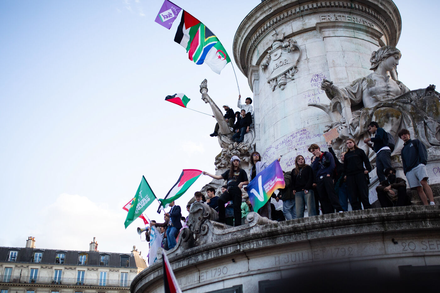 Depuis les éléctions Européénes (plus de 30 pour cent pour le parti d'extrême droite Rassemblement Nationale) et la décision de dissolution de l'Assemblée Nationale d'Emmanuel Macron , des manifestations ont lieux chaques soirs sur la Place de la République,