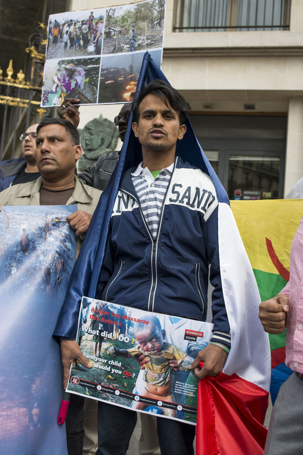 Un rassemblement en soutien au Rohingya a mobilisé une cinquantaine de personne près de l'Ambassade de Birmanie à Paris pour demander la cessation des violences de la part de l'armée Birmane à l'encontre de cette ethnie de religion musulmane. Plus de 300 000 civils se seraint réfugiés au Bangladesh ses deux dernières semaines pour fuir les violences tandis que l'ONU dénonce un nettoyage ethnique.