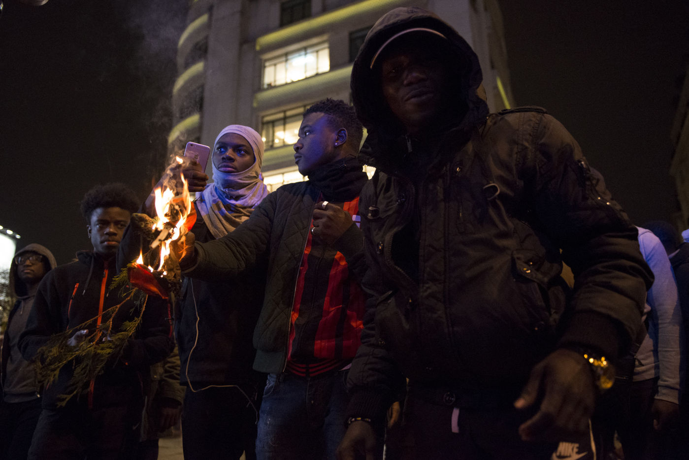 Des manifestants, réunis à l'appel de plusieurs associations contre l'esclavage en Libye, en réaction à la diffusion du reportage de CNN montrant des migrants vendus aux enchères, ont été gazés et violement repoussés sur les Champs-Élysées.