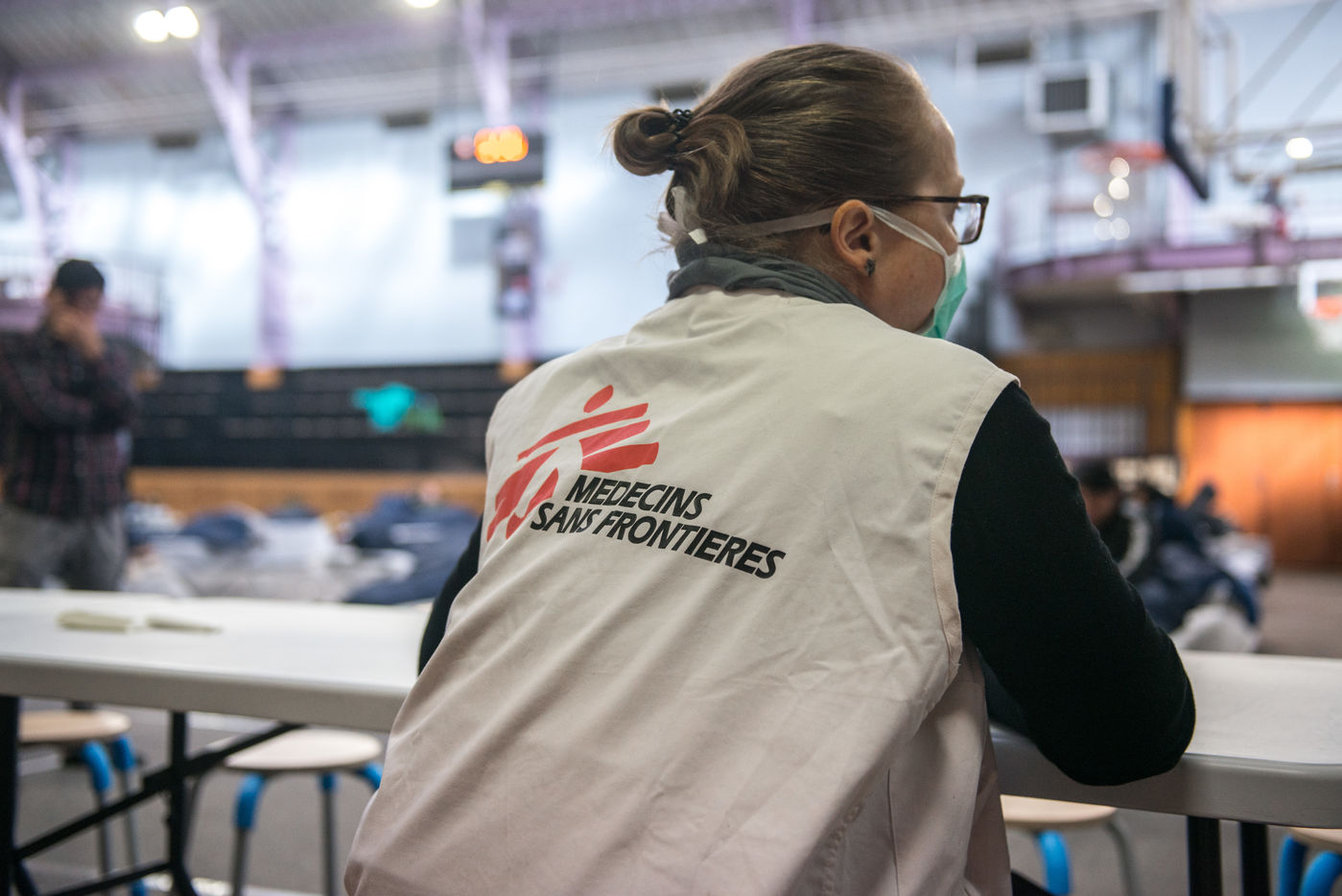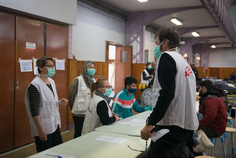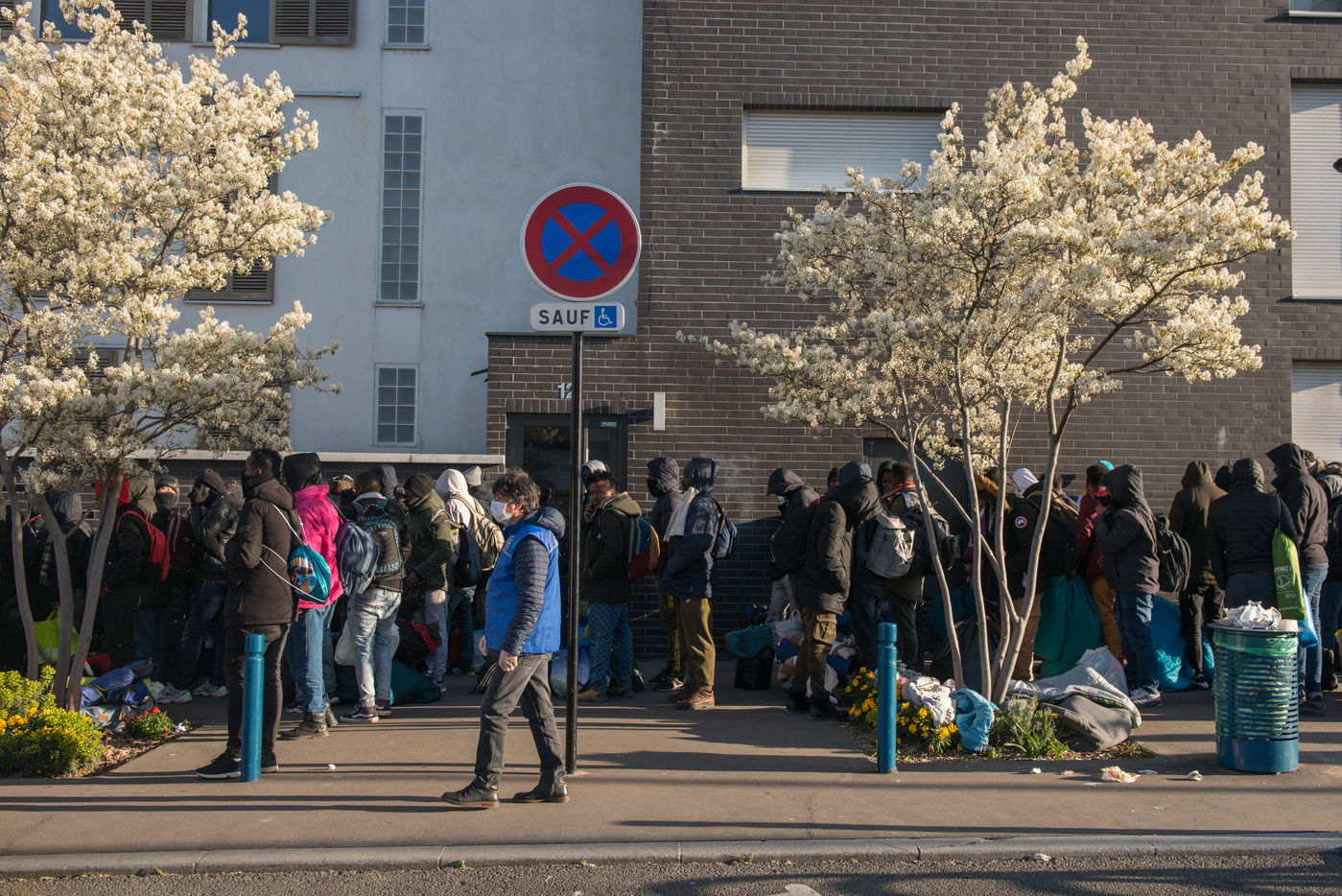 Evacuation of the Aubervilliers migrant camp on March 24, 2020. On the 8th day of confinement in France during the coronavirus pandemic, the prefecture evacuates the makeshift camp where more than 500 people were sleeping in tents.
