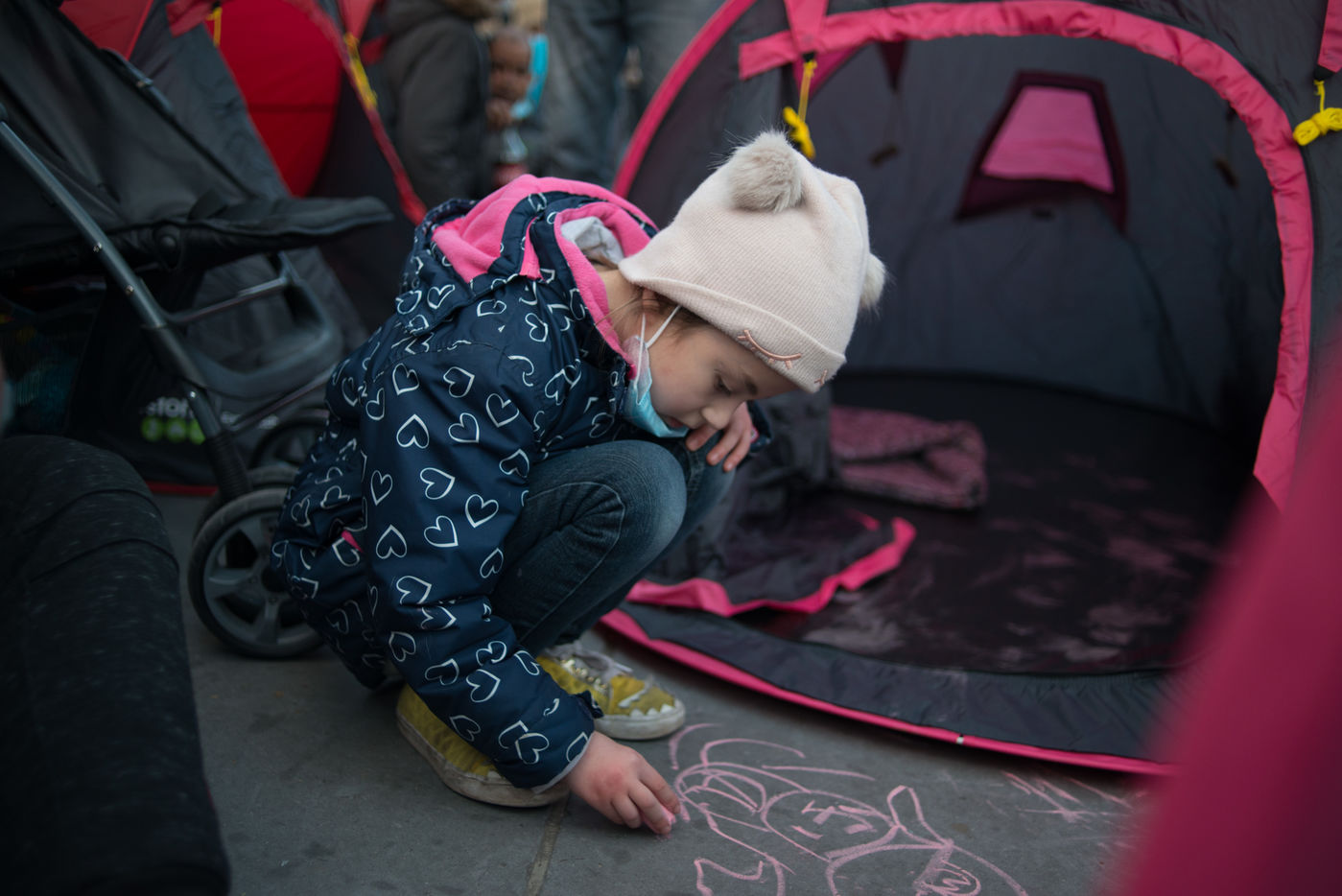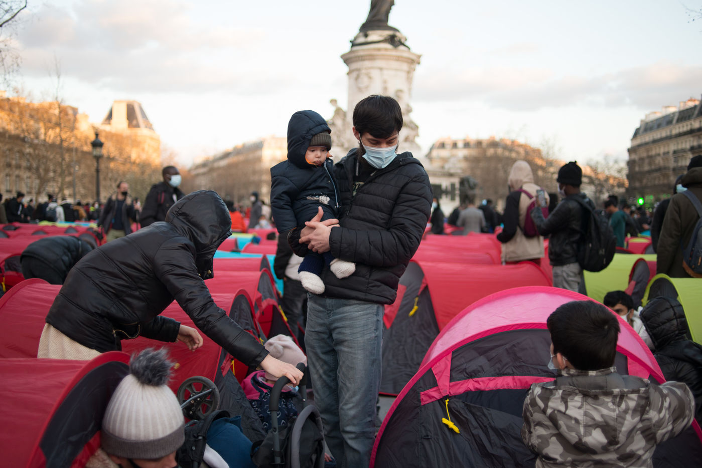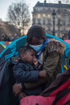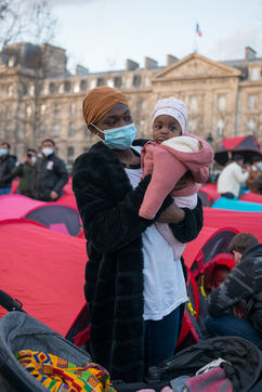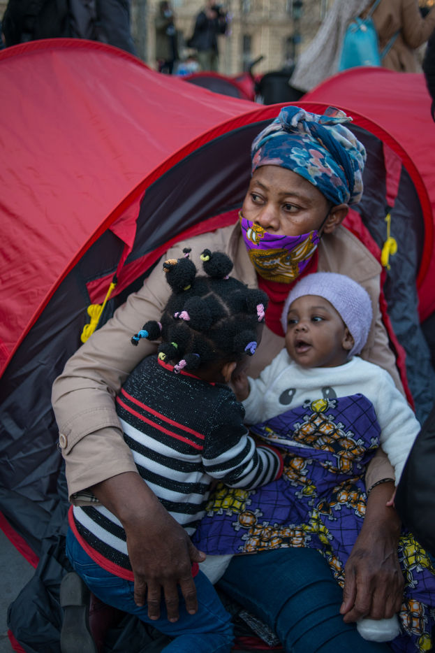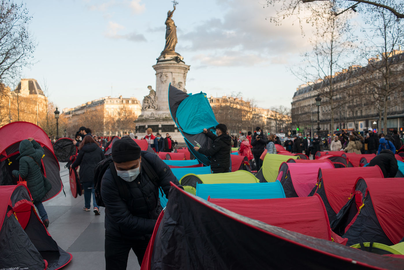 An exile camp settles in République for "the Night of Solidarity" at the initiative of several associations in order to "request immediate, stable and decent accommodation" for the exiles, on March 25, 2021 in Paris.