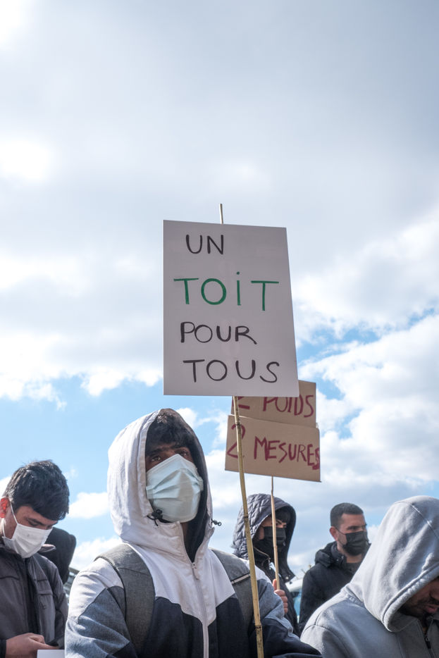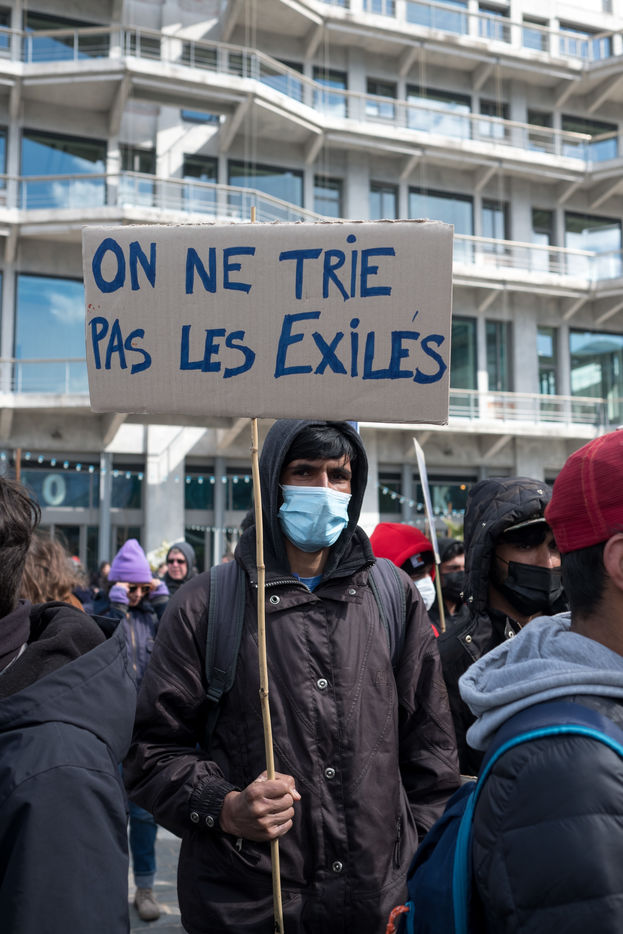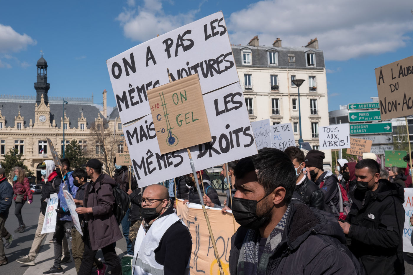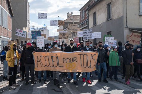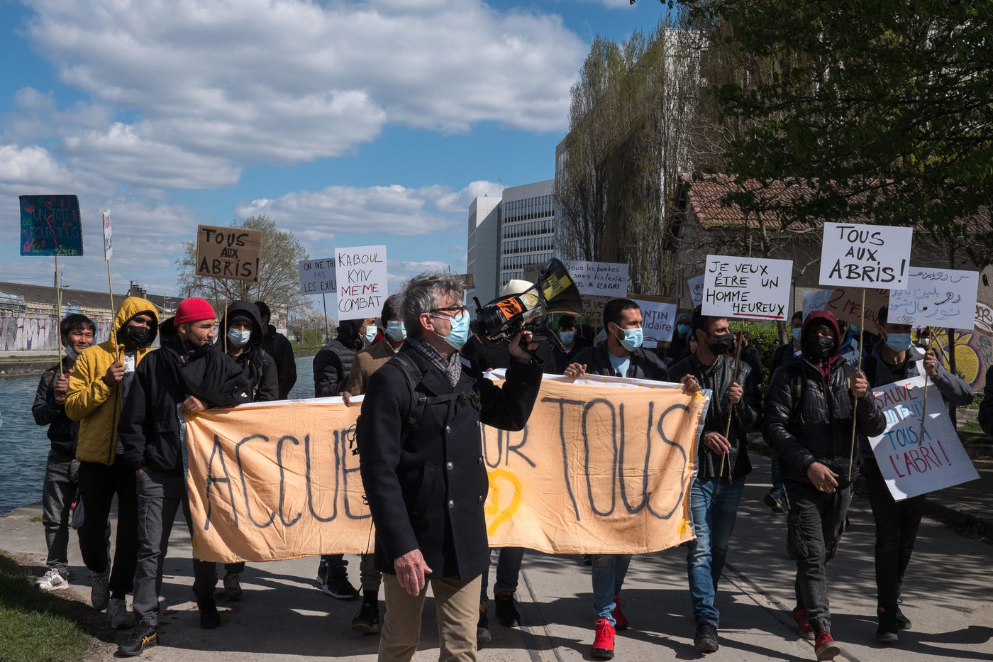 For several weeks, Afghan exiles have been living in the Black Horse camp in Pantin while waiting for shelter, sleeping in tents. On 3 April 2022, a demonstration for an unconditional and equal reception of all exiles, organised by the Pantin Solidaire collective and other humanitarian associations, marched along the canal.