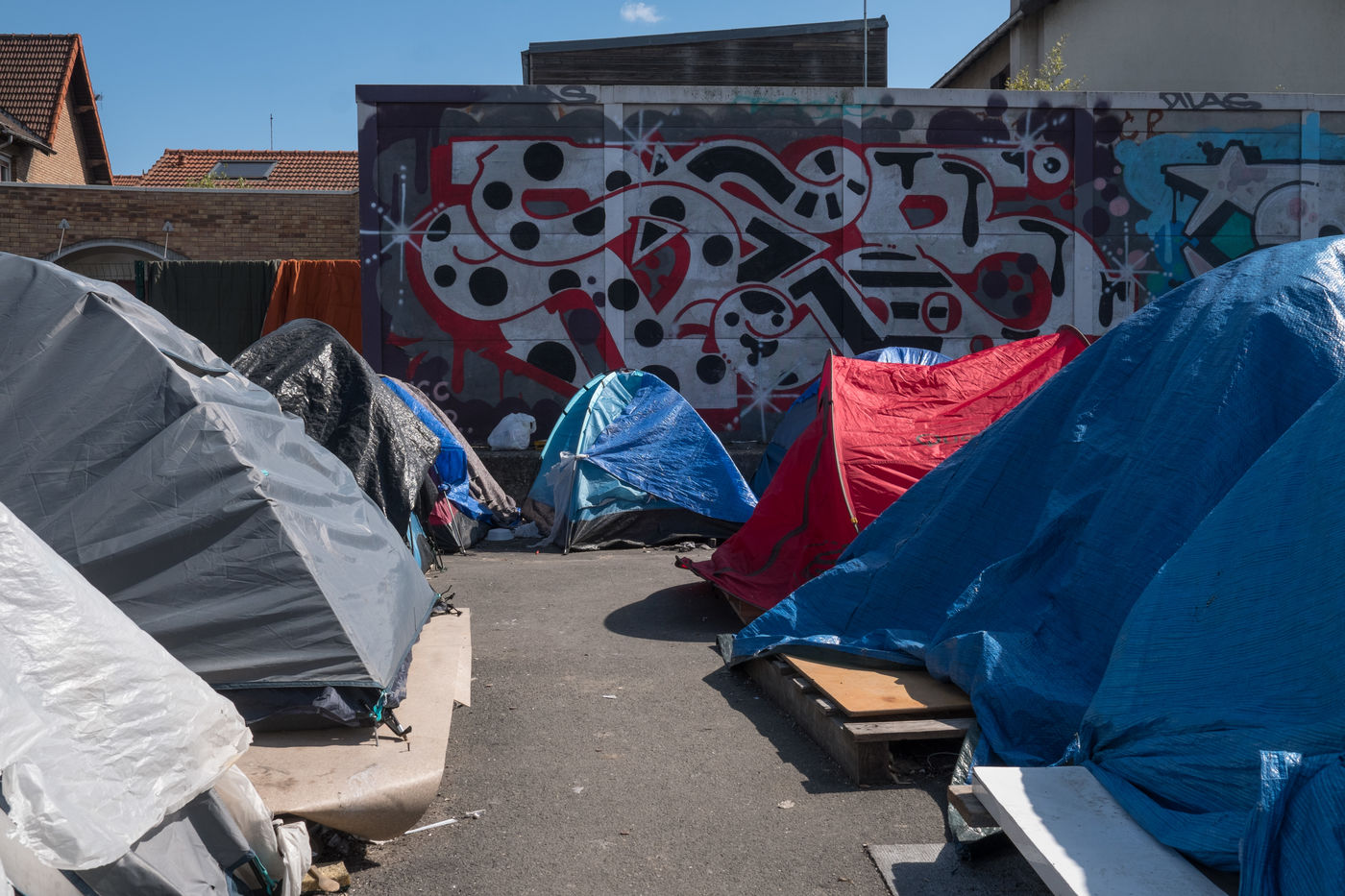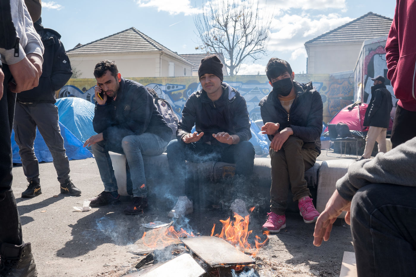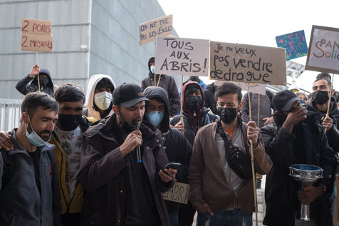 Depuis plusieurs semaines, des exilés afghans vivent sur le campement du cheval noir à Pantin dans l'attente d'une mise à l'abri, ils dorment dans des tentes. Le 3 avril 2022, une manifestation pour un accueil inconditionnel et égal de tous les exilés, organisée par le collectif Pantin Solidaire et d'autres associations humanitaires, a défilé sur le canal.