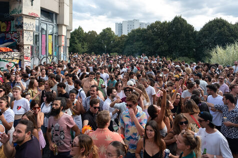 Giant Open Air Festival with house, minimal and disco DJ-set hits from Parisian collectives Toilettes Mixtes & Cookies Records, at the Belleville Park amphitheatre, on the afternoon of 2 September 2023 in Paris.