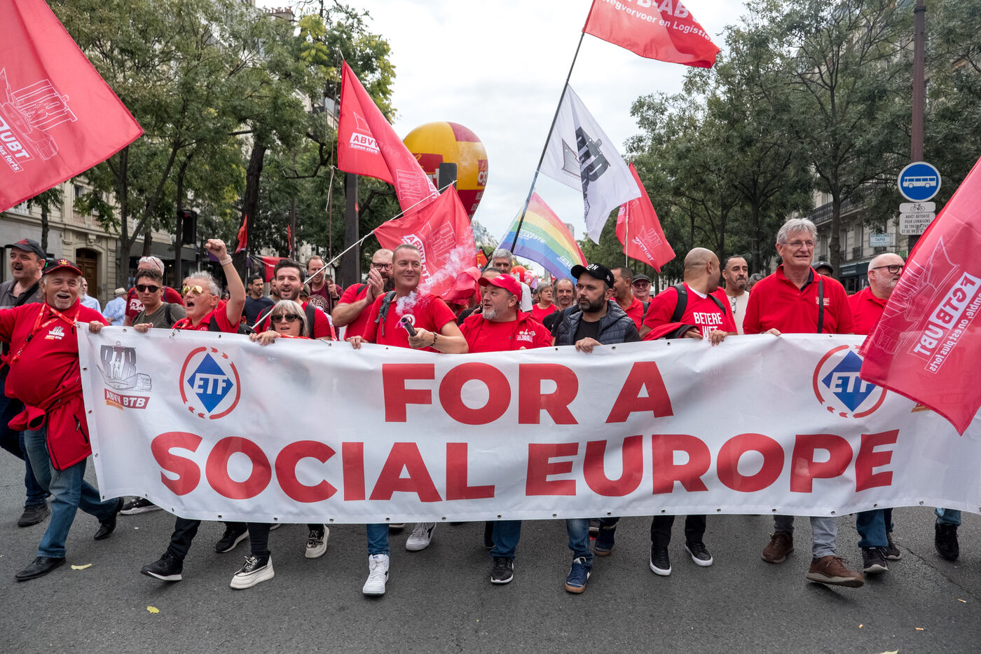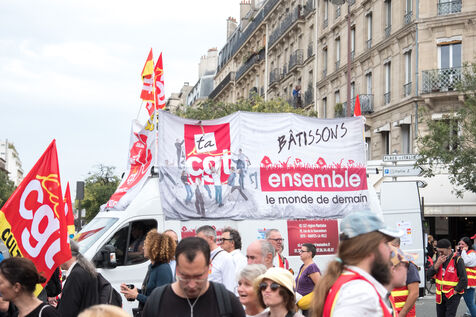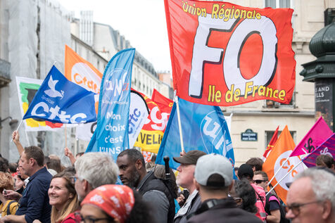 France, Paris, 2023-10-13. Cross-industry demonstration for higher wages, gender equality and pension reform. Strike day.