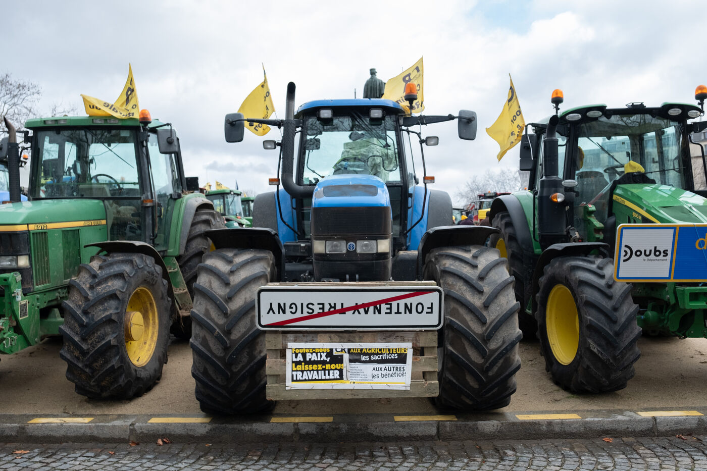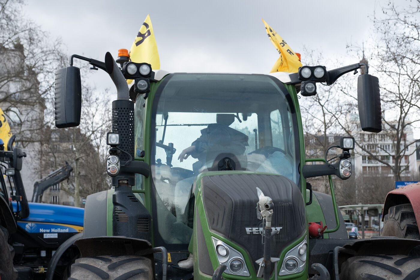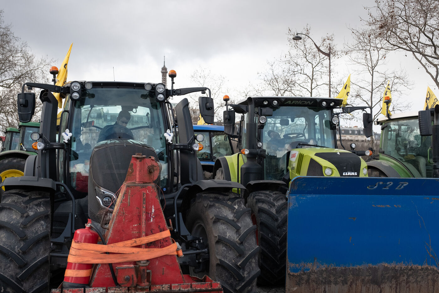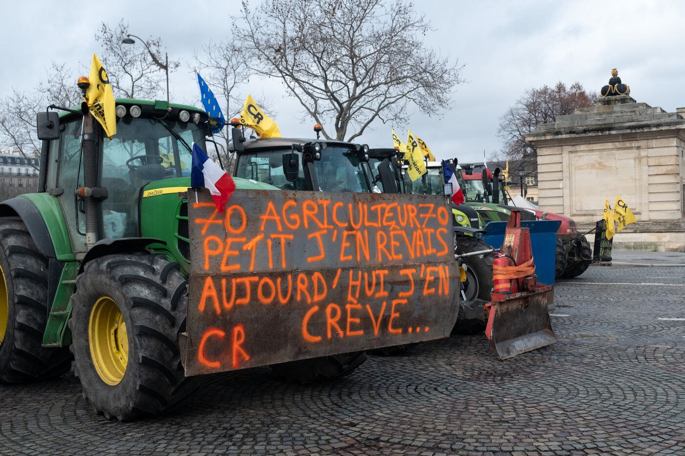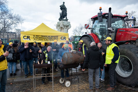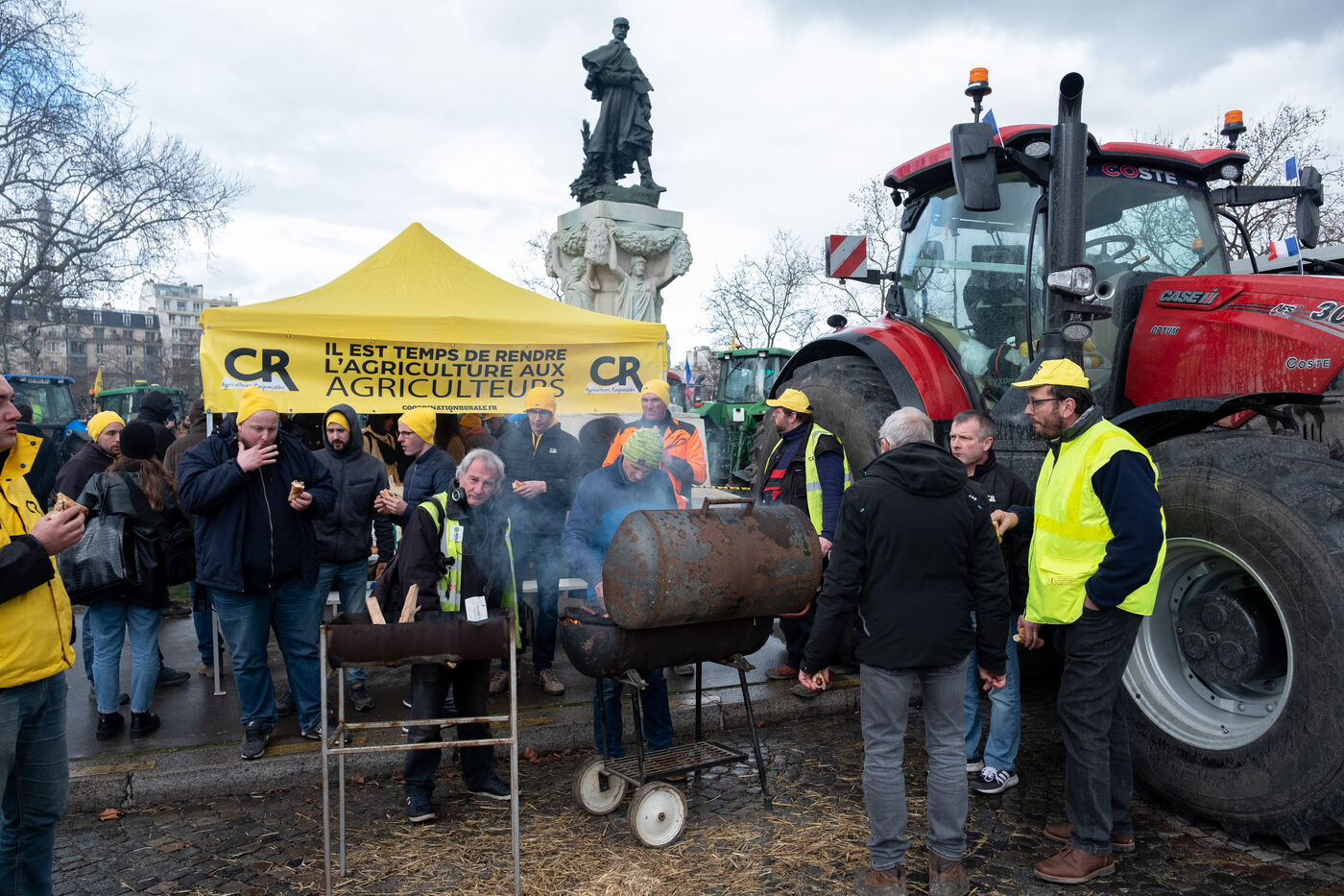 Manifestation des agriculteurs de la coordination rurale sur la place Vauban à Paris le 23 février 2024, à la veille du salon de l'agriculture.