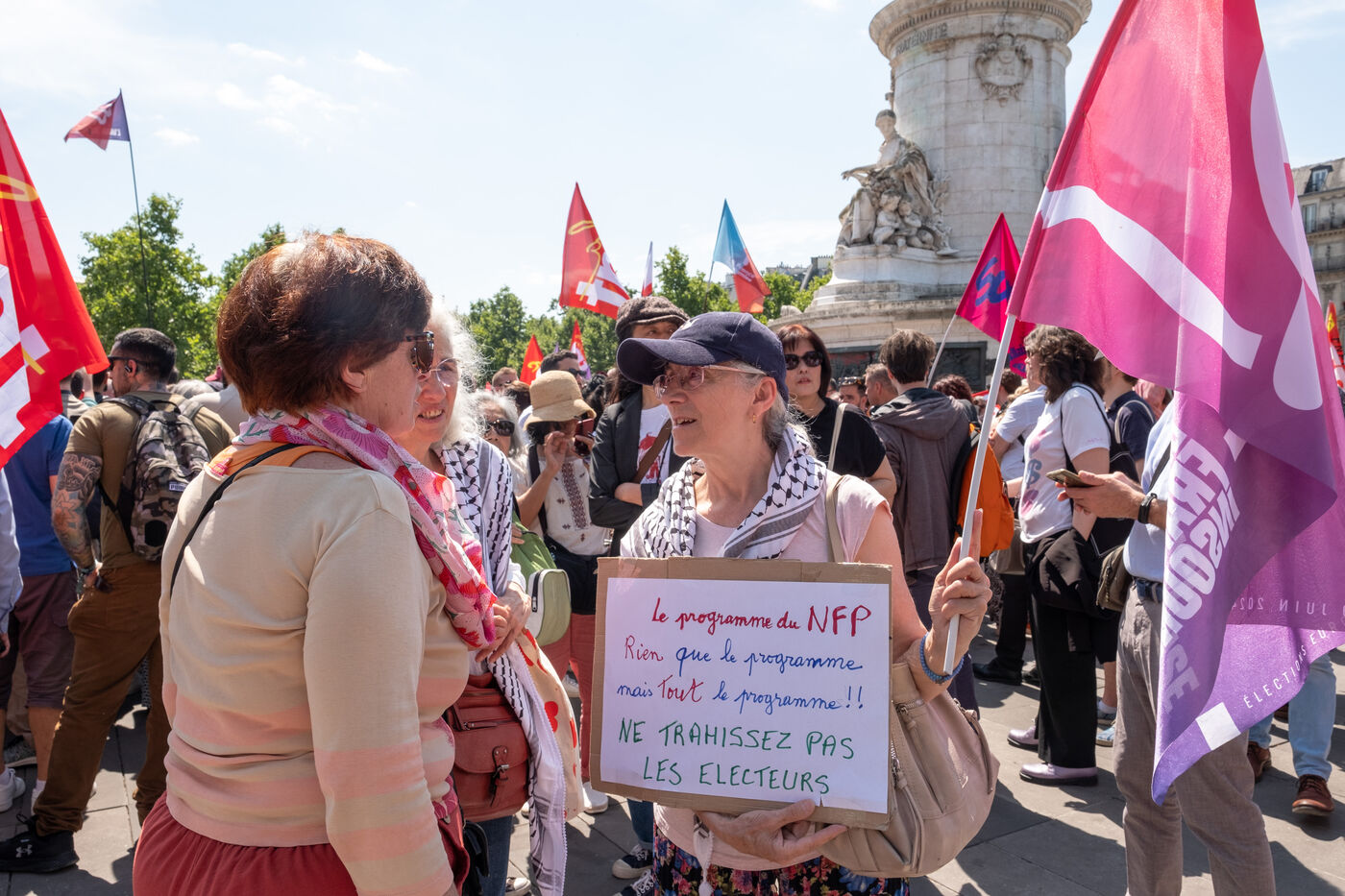 The CGT, FSU and Solidaires unions will be demonstrating in support of the New Popular Front on Thursday, July 18, 2024 in Place de la République.