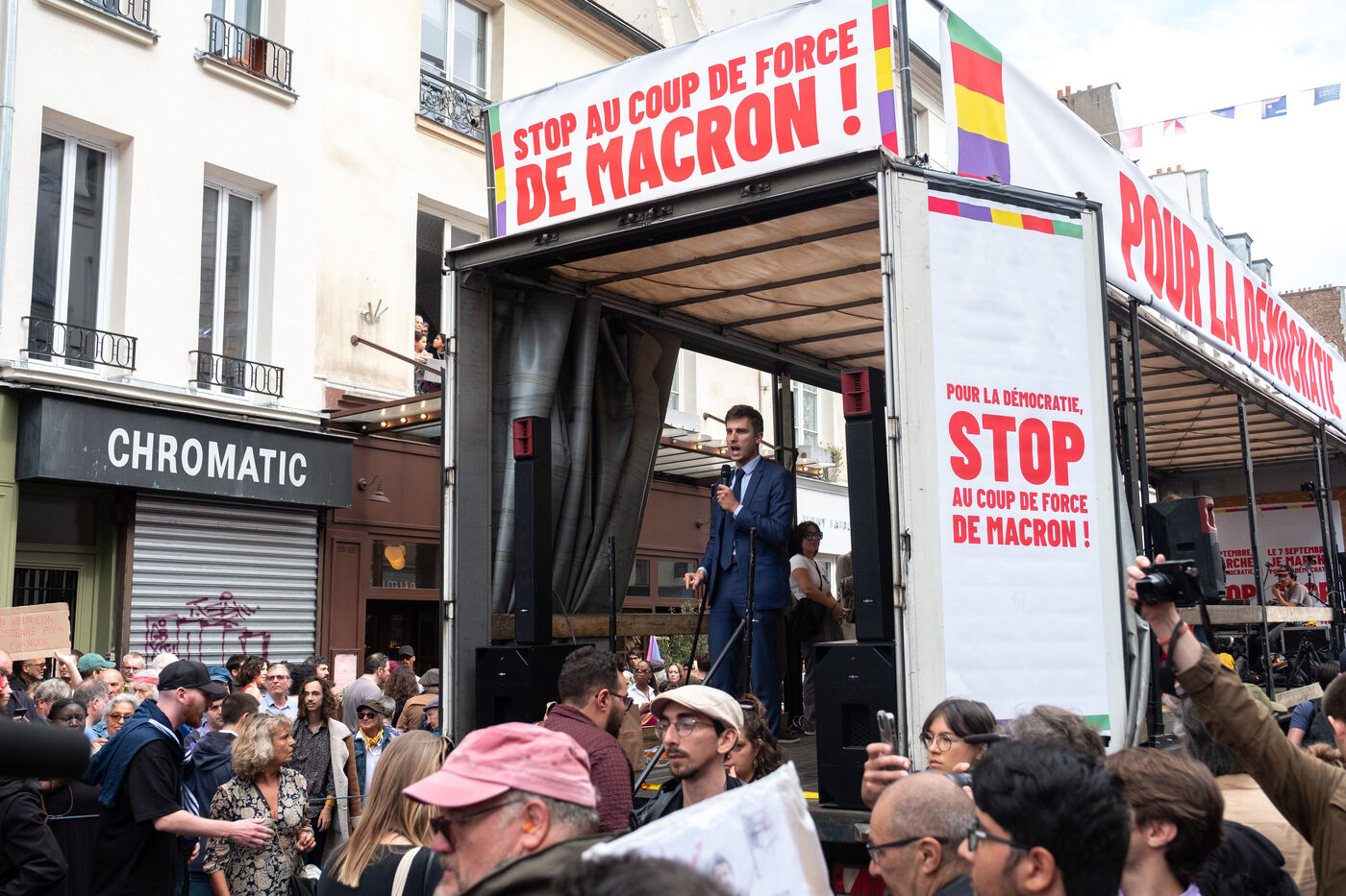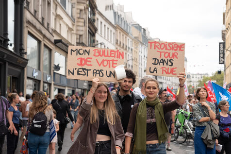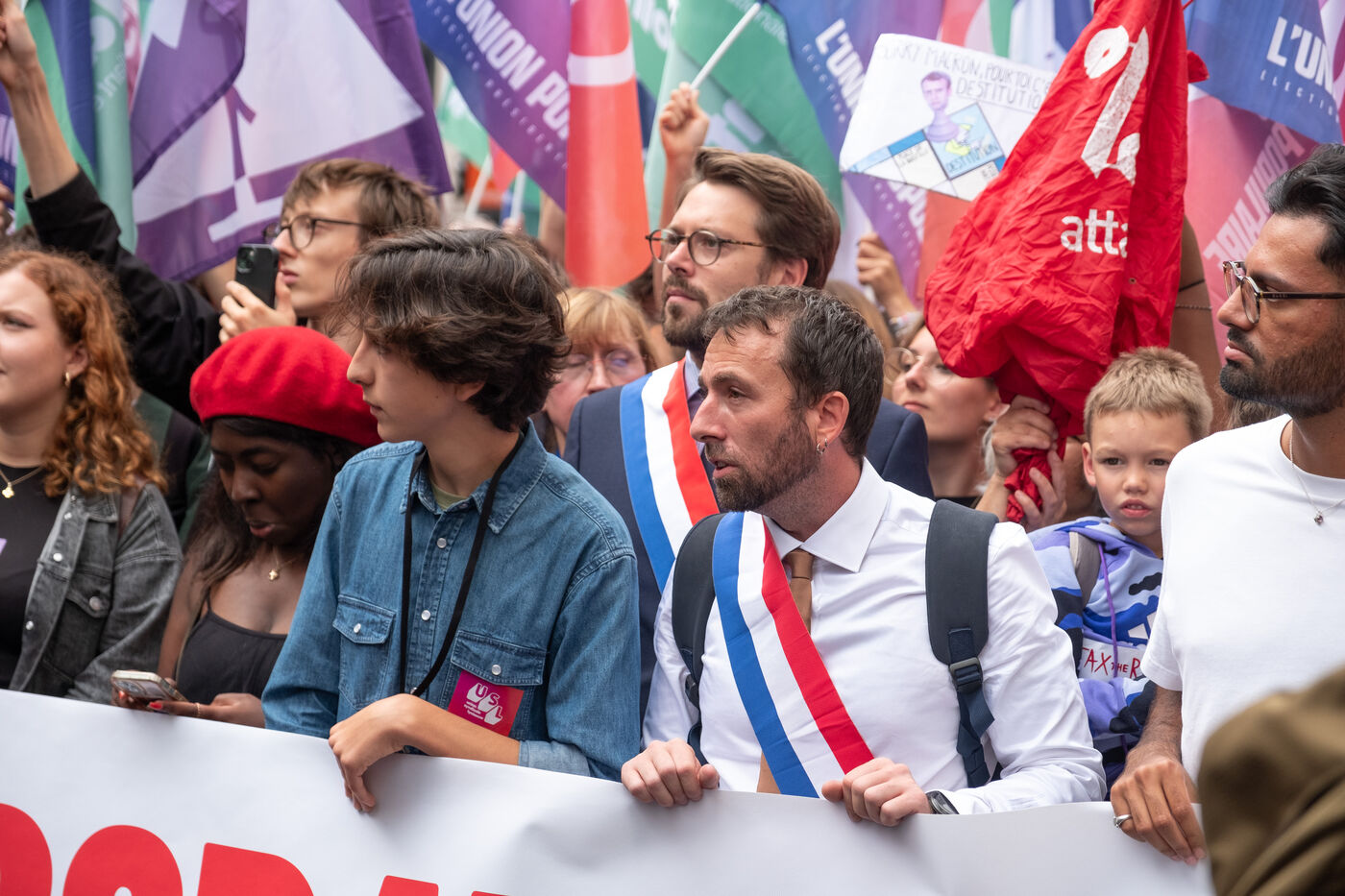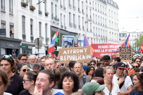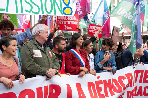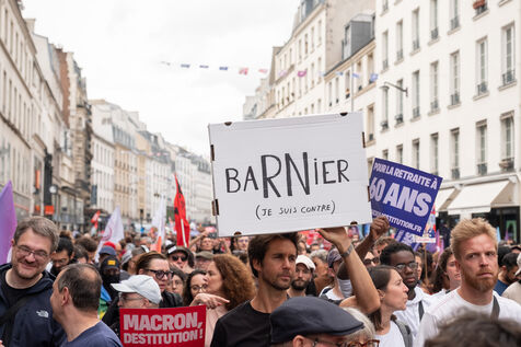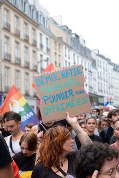 Manifestation pour la démocratie et contre la politique de Macron après l'élection de Michel Barnier premier ministre. L'appel à la mobilisation a été lancé par La France Insoumise (LFI), et les syndicats de jeunesse l’Union étudiante et l’Union syndicale lycéenne (USL).