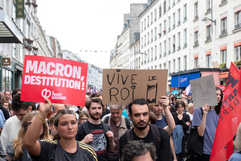 Demonstration for democracy and against Macron's policies after the election of Michel Barnier as prime minister. The call for mobilization was launched by La France Insoumise (LFI), and the youth unions the Student Union and the High School Union (USL).