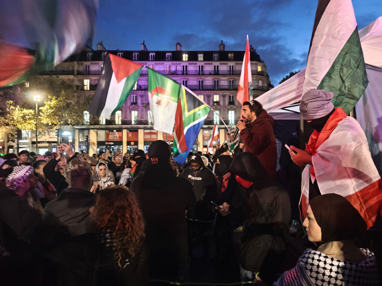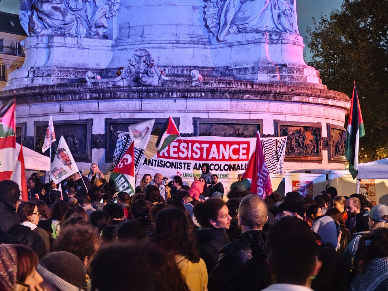 Demonstration against Israeli bombings of southern Lebanon and Gaza on Septembre 27, 2024 on the Place de la République in Paris.