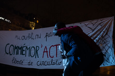 Commemoration rally of the victims of migration policies at the borders at place de la République at Paris the February 6, 2025.