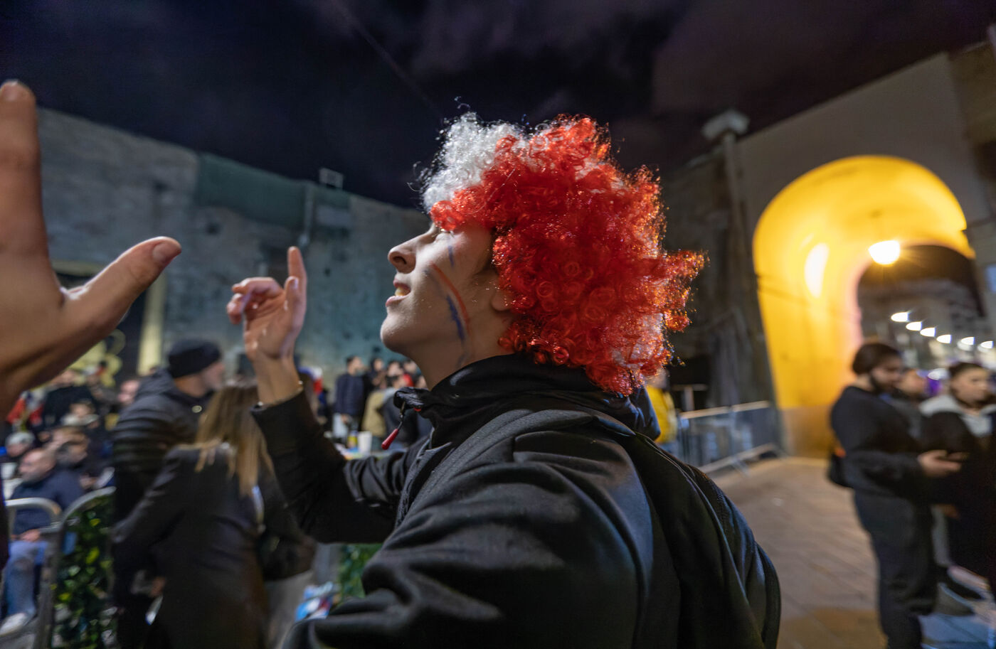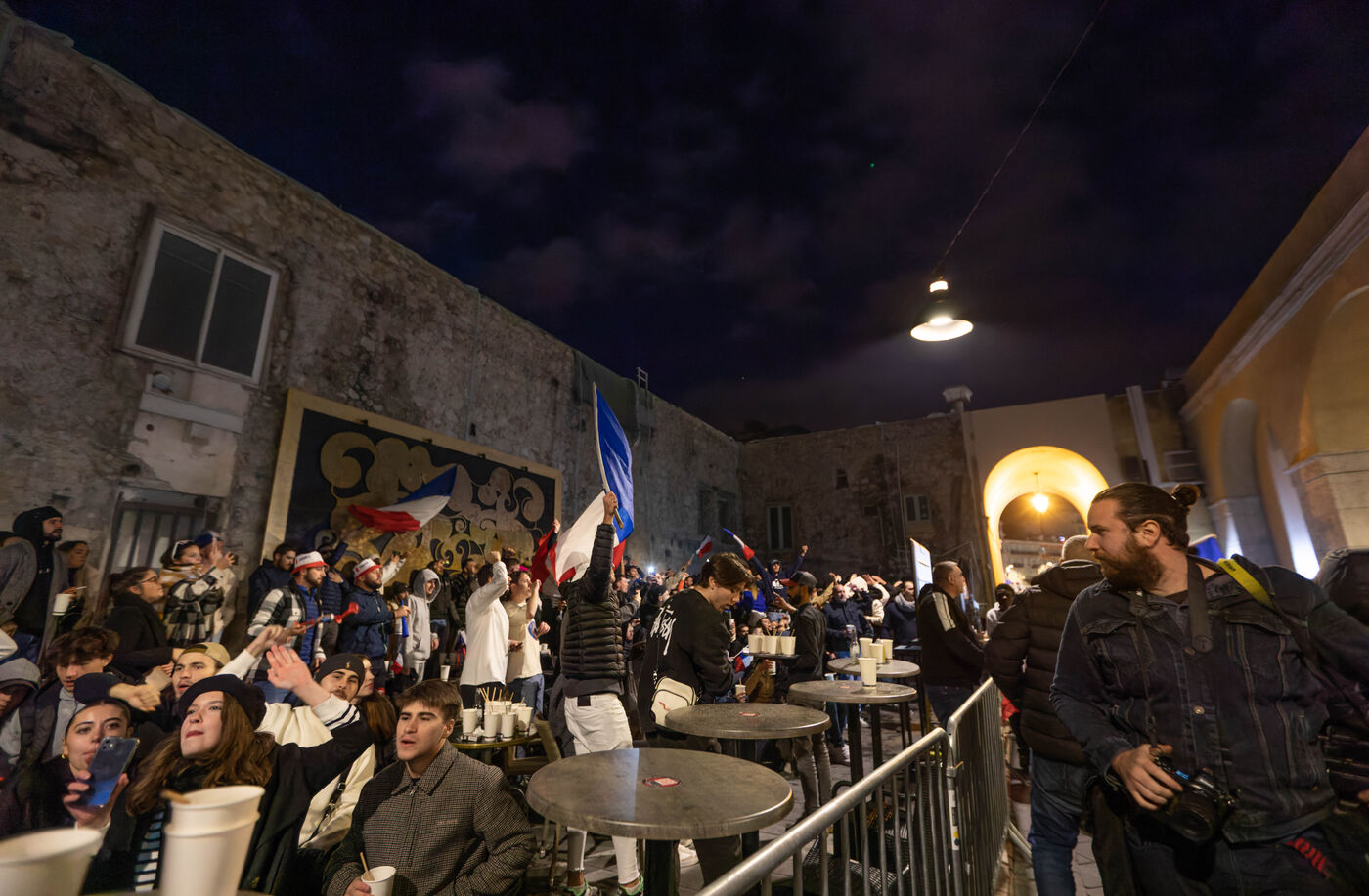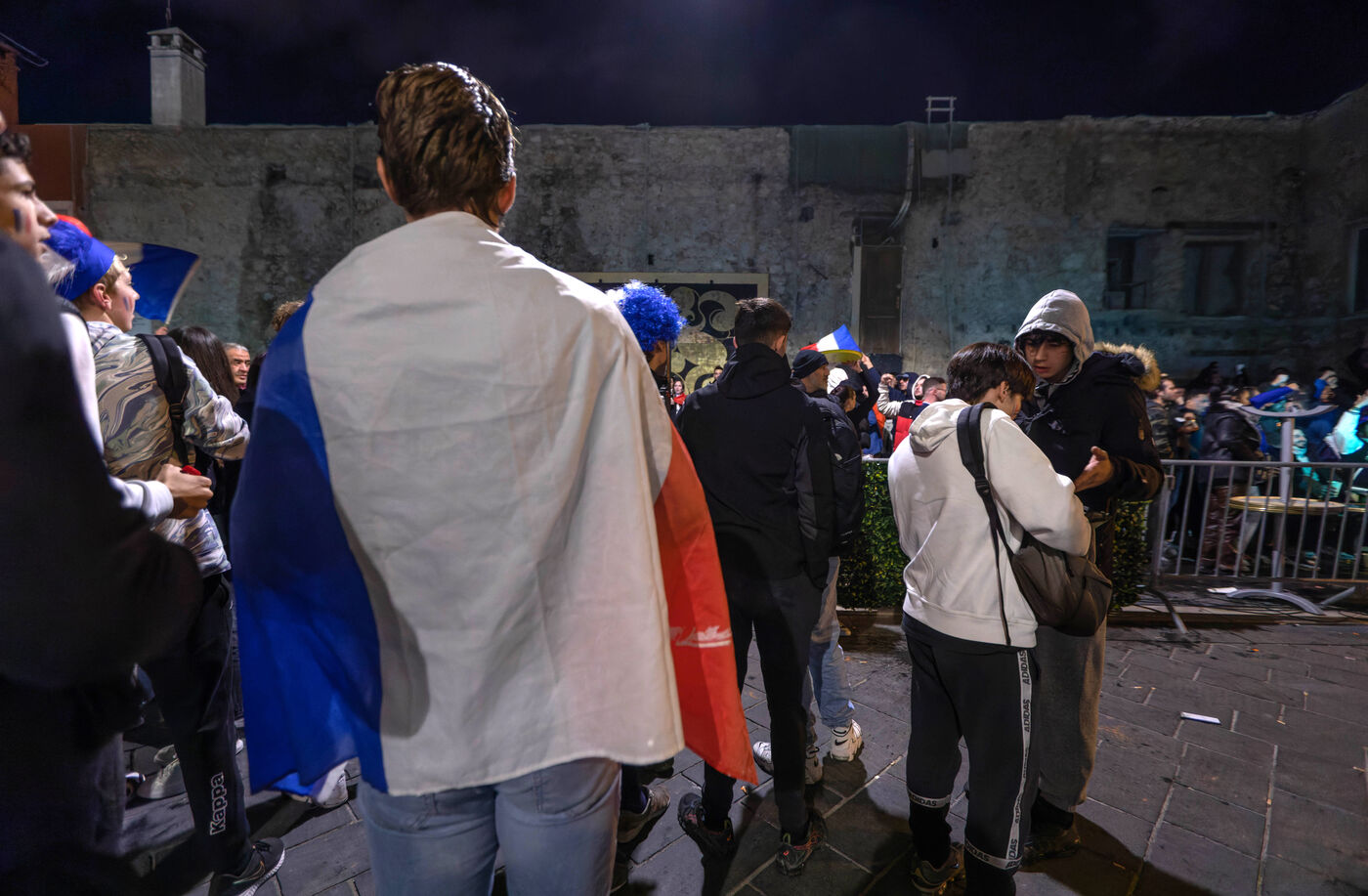 The supporters and fans of the French team, in the streets of Nice, during the final of the football world cup against Argentina.