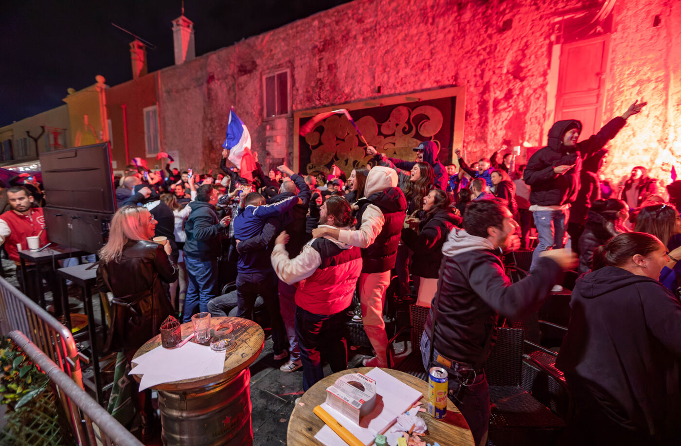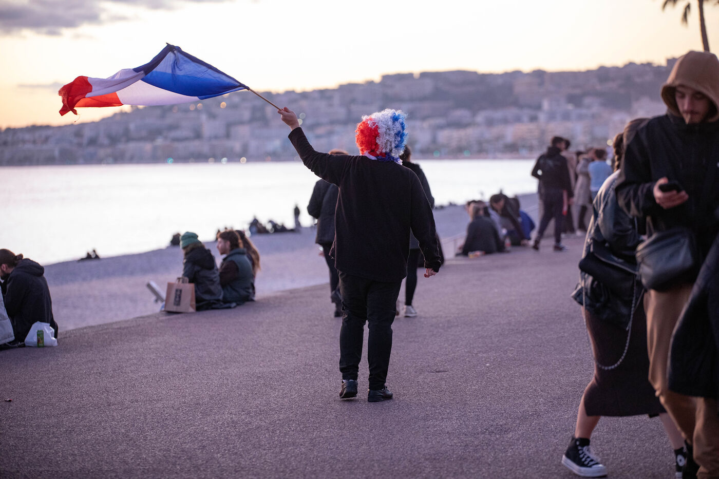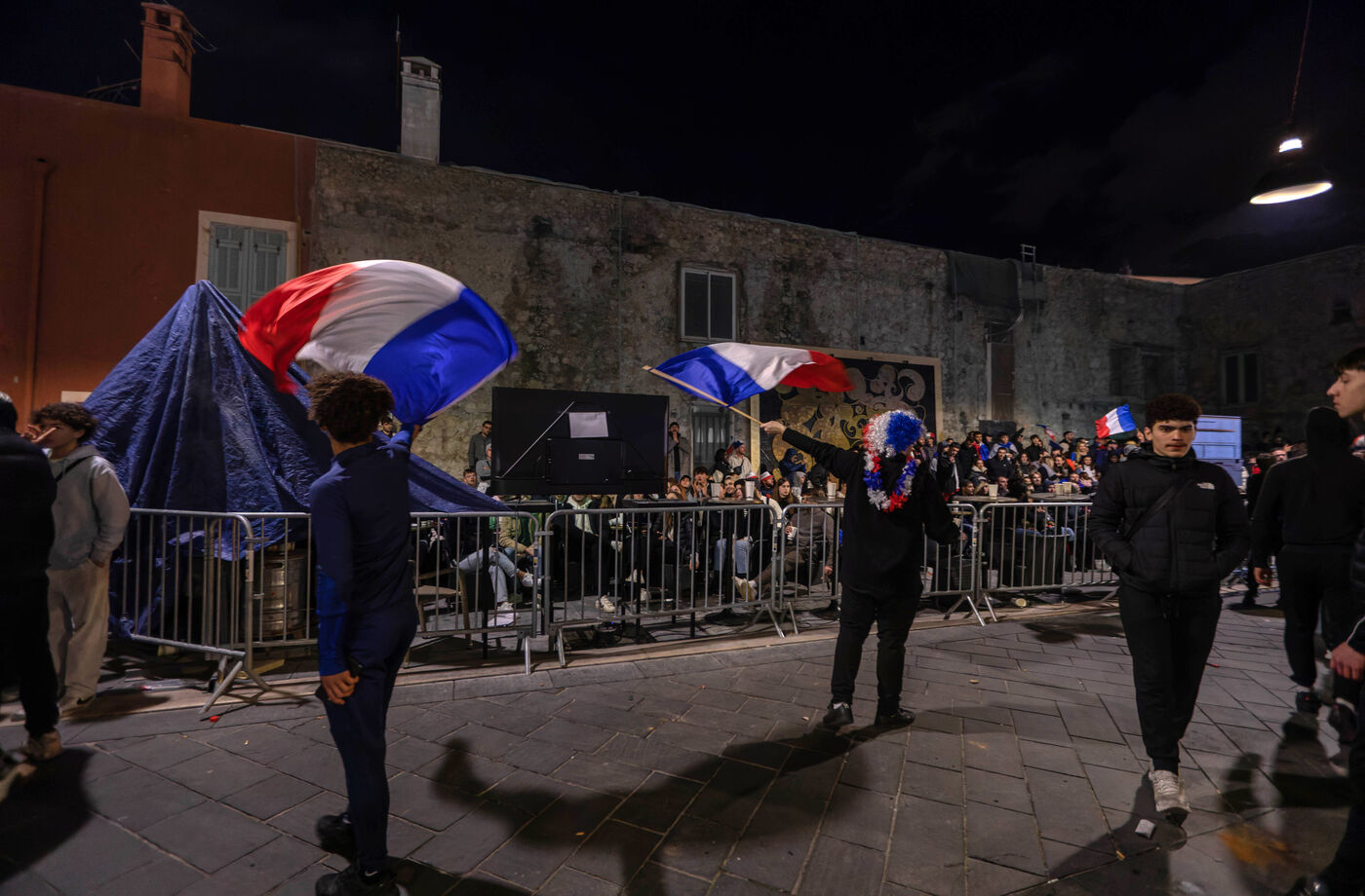 Les supporteurs et les fans de l'équipe de France, dans les rues de Nice, lors de la finale de la coupe du monde de football contre l'argentine.