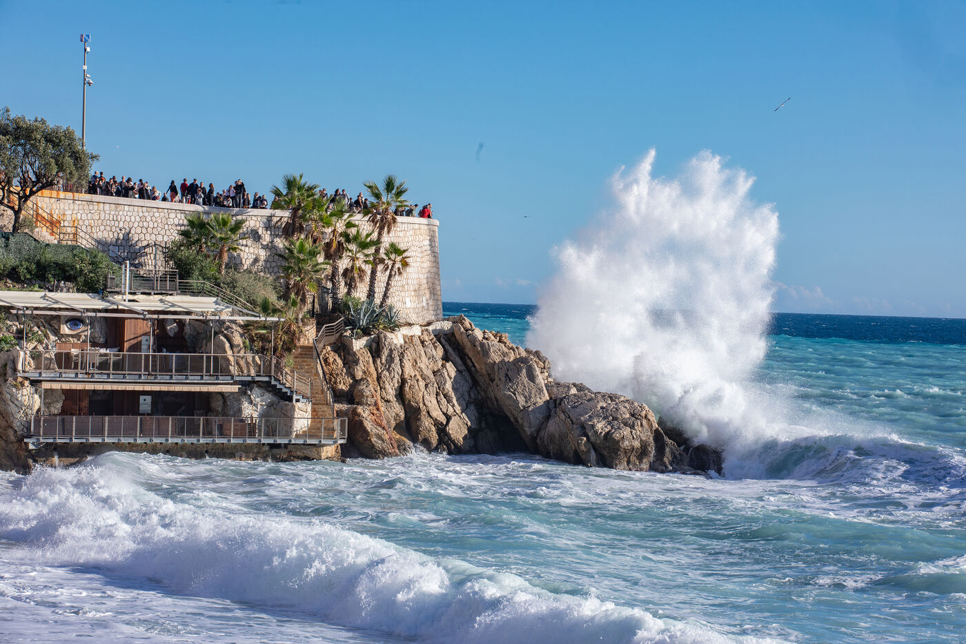 The swell has been attacking the seafront in Nice recently, attracting a lot of curious onlookers.