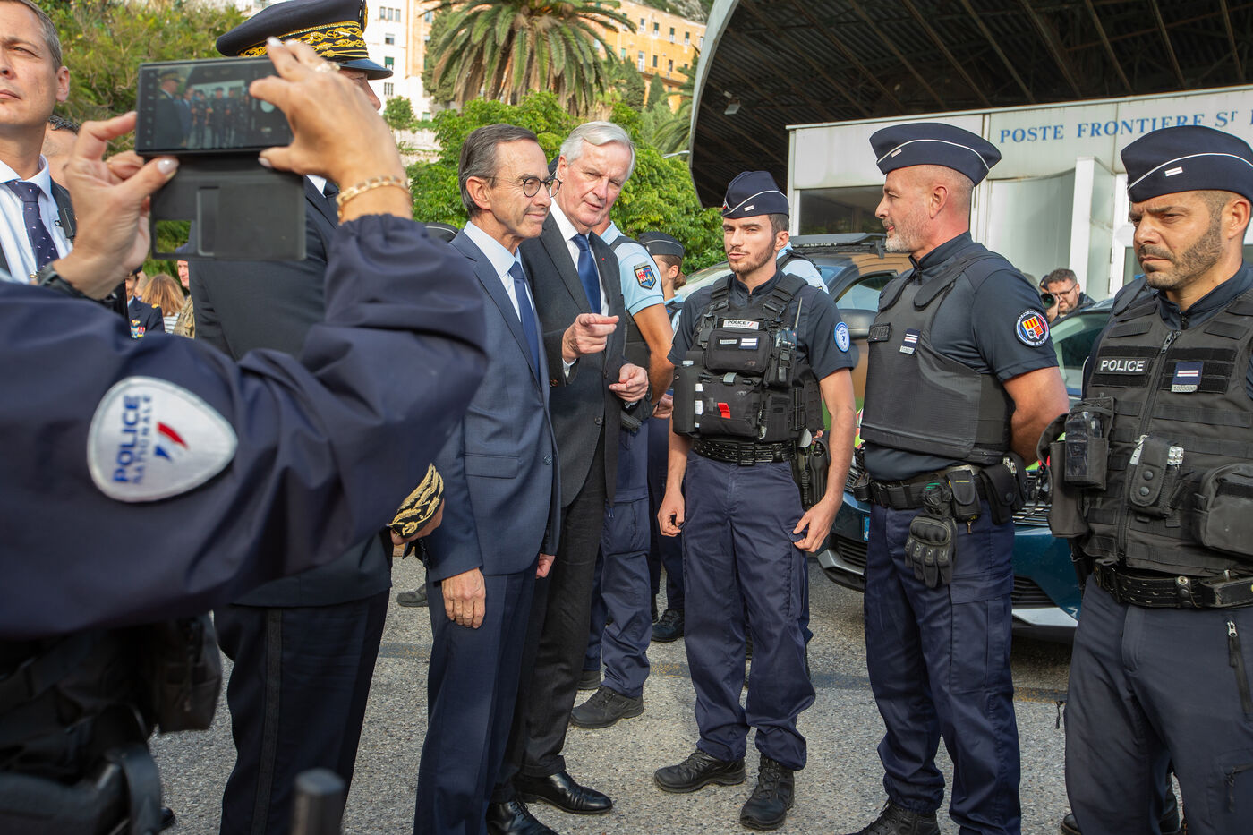 M. Michel BARNIER, Premier ministre a effectuéc un déplacement à Menton (Alpes-Maritimes) et à Vintimille (Italie) ce vendredi 18 octobre 2024 sur les thèmes du contrôle aux frontières et de la lutte contre l’immigration irrégulière. M. Michel BARNIER était accompagné de M. Bruno RETAILLEAU, Ministre de l’Intérieur. Au cours de la journée, ils ont échangé avec M. Antonio TAJANI, Vice-président du Conseil des ministres italien, Ministre des affaires étrangères et de la coopération internationale et de M. Matteo PIANTEDOSI, Ministre de l’Intérieur italien.
