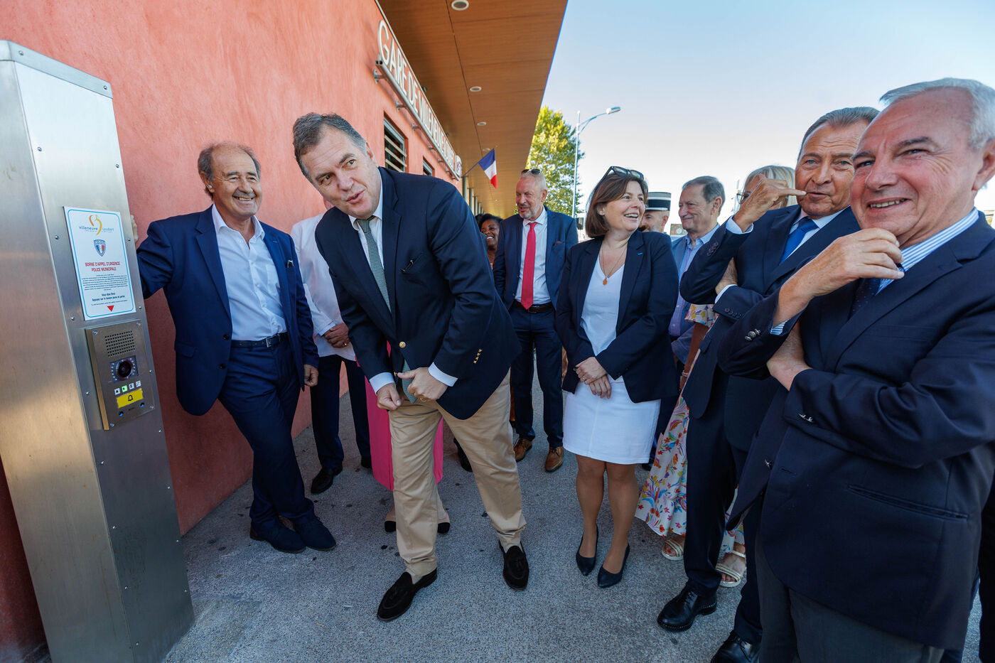 Déplacement du ministre des Transports Philippe Tabarot dans les Alpes-Maritimes le 30 août. Visite de la gare SNCF de Villeneuve-Loubet-Plage pour découvrir les nouveaux aménagements