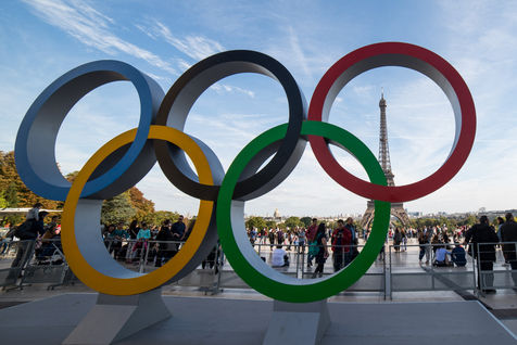 Les anneaux Olympiques sur le parvis du Trocadero