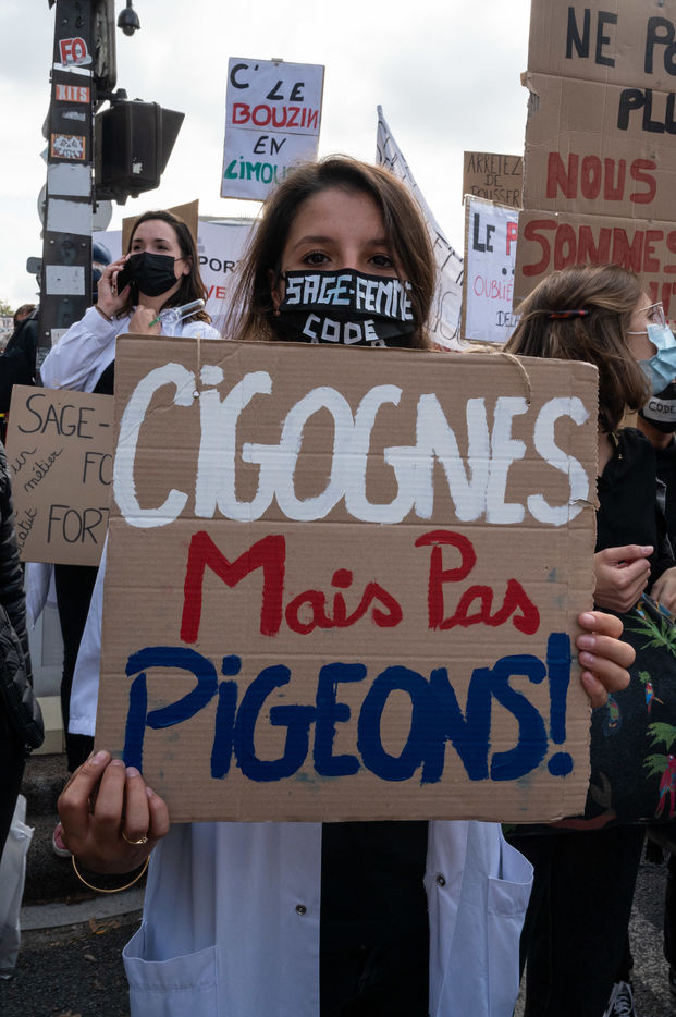Demonstration of midwives in Paris. Loss of meaning in their profession, poor remuneration given the five years of study required to practice, lack of daily resources, shortage of personnel. The claims of midwives are manifold, and go beyond their personal interests. UNSSF calls for a strike, the National Union and Union of Midwives believes that it is urgent to recognize the essential place of first resort of midwives in the health care system.