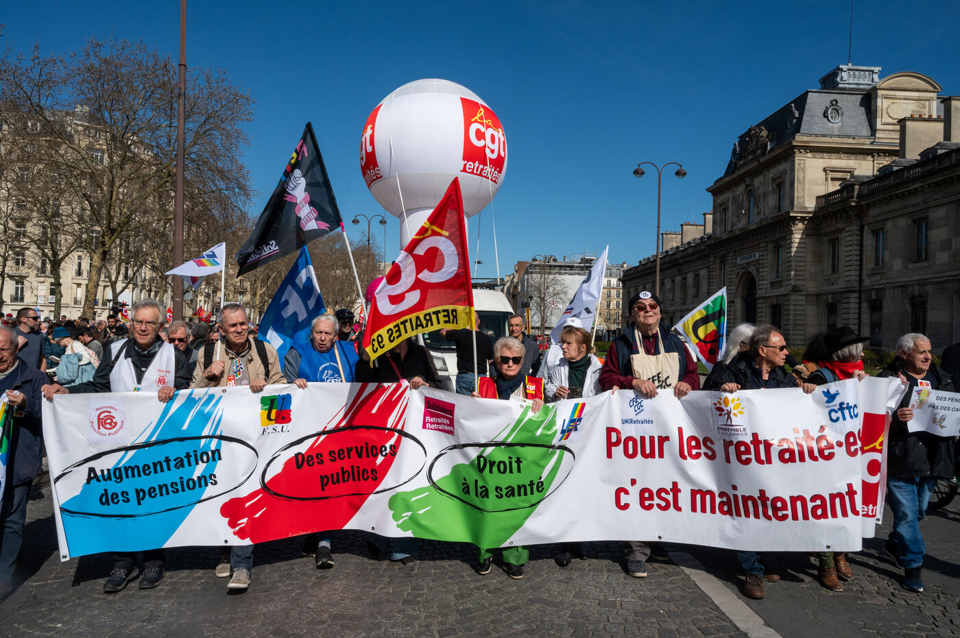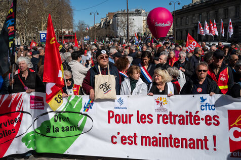 Manifestation à l'appel des syndicats pour la revalorisation des pensions et pour l’accès aux soins de toutes et tous à Paris.